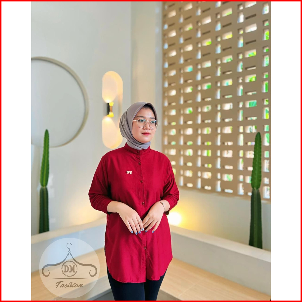 Kemeja Rayon Twill Lengan 3 4 Blouse Wanita Lengan 3 4
