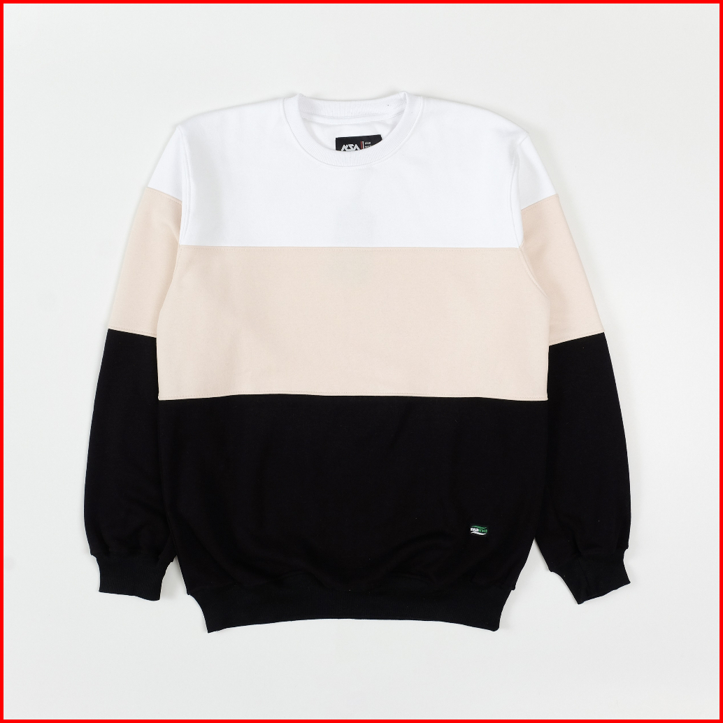 Nsa Ind Crewneck Three Colour Block Cream Pria Wanita