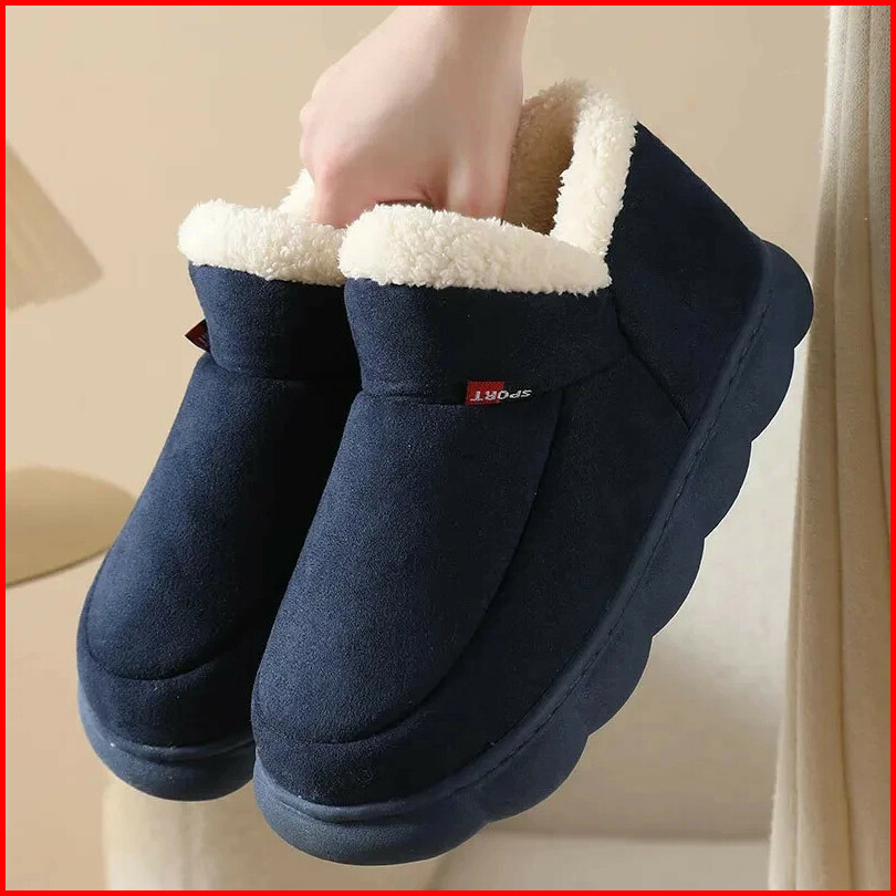 Bebealy Men Shoes Fur Women Slippers Winter House Shoes For Women Indoor Plush Warm Women Shoes 2024 Casual Home Shoes F