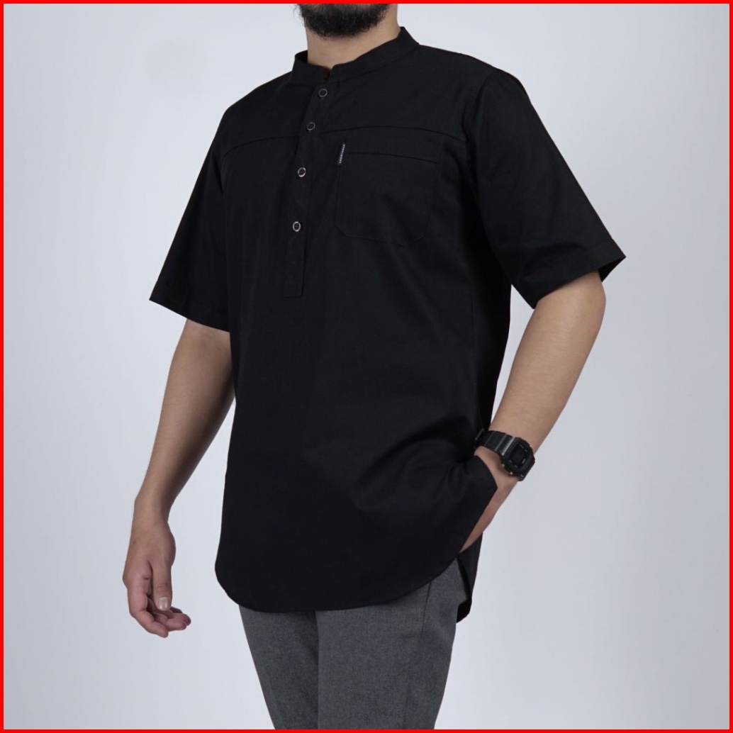 Khoirummah Kurta Hamzah Dewasa Baju Muslim Pria Dewasa Tangan Pendek - Black