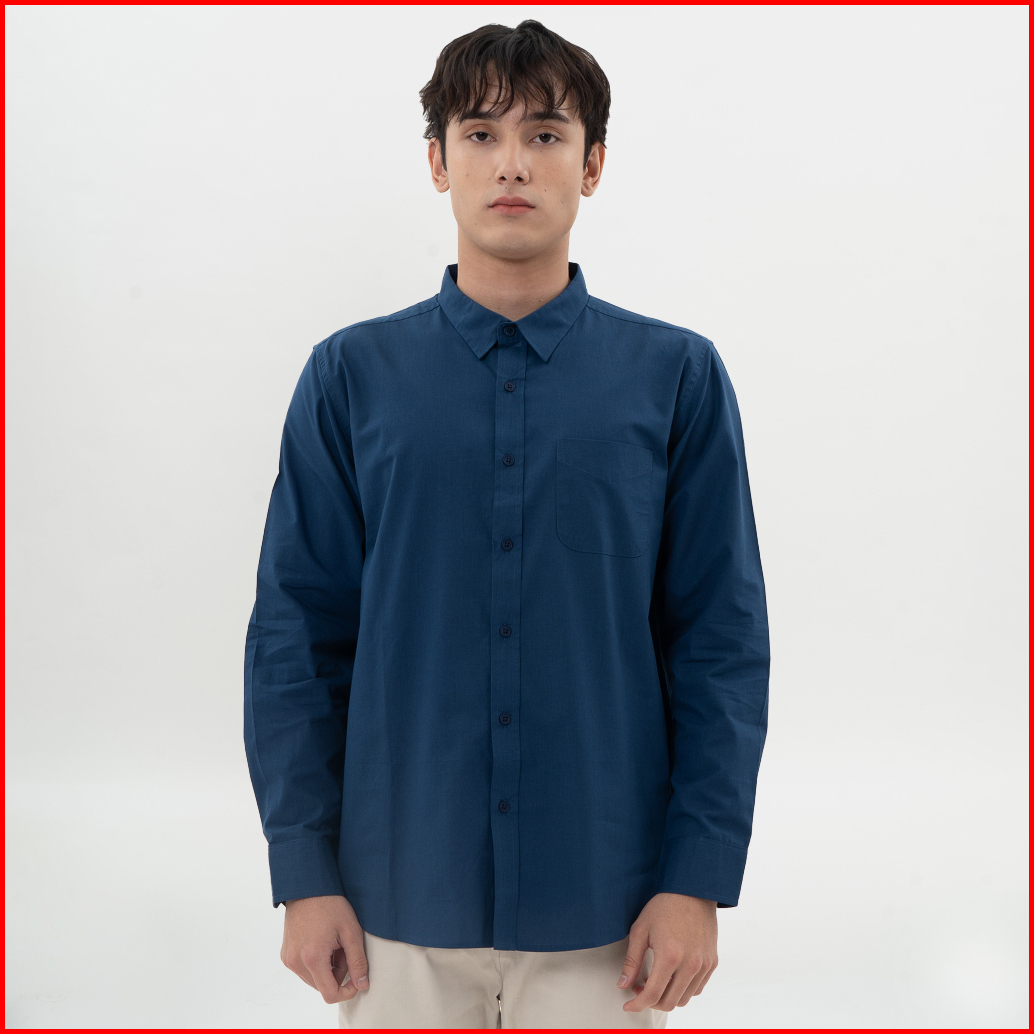 M231 Kemeja Pria Basic Polos Panjang Navy 0642j