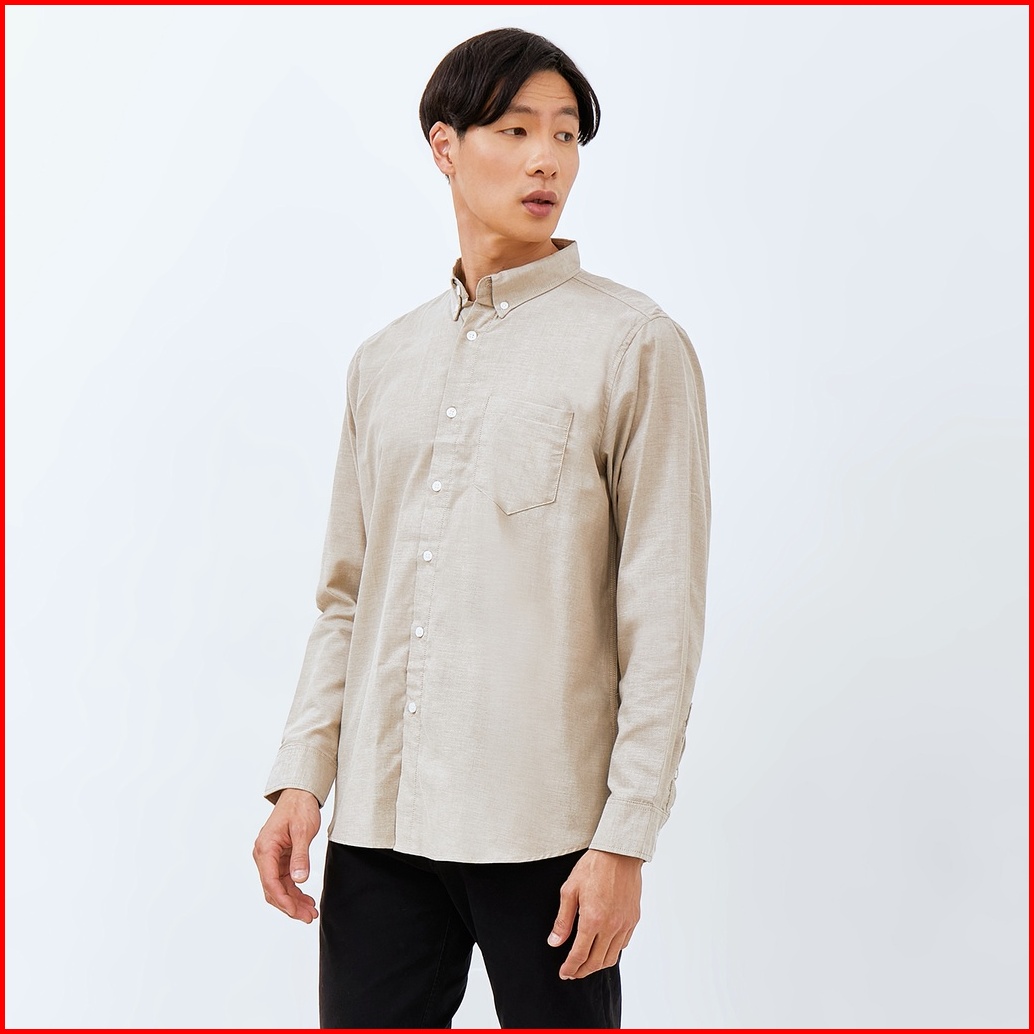 M231 Kemeja Pria Basic Polos Oxford Panjang Khaki 1456a