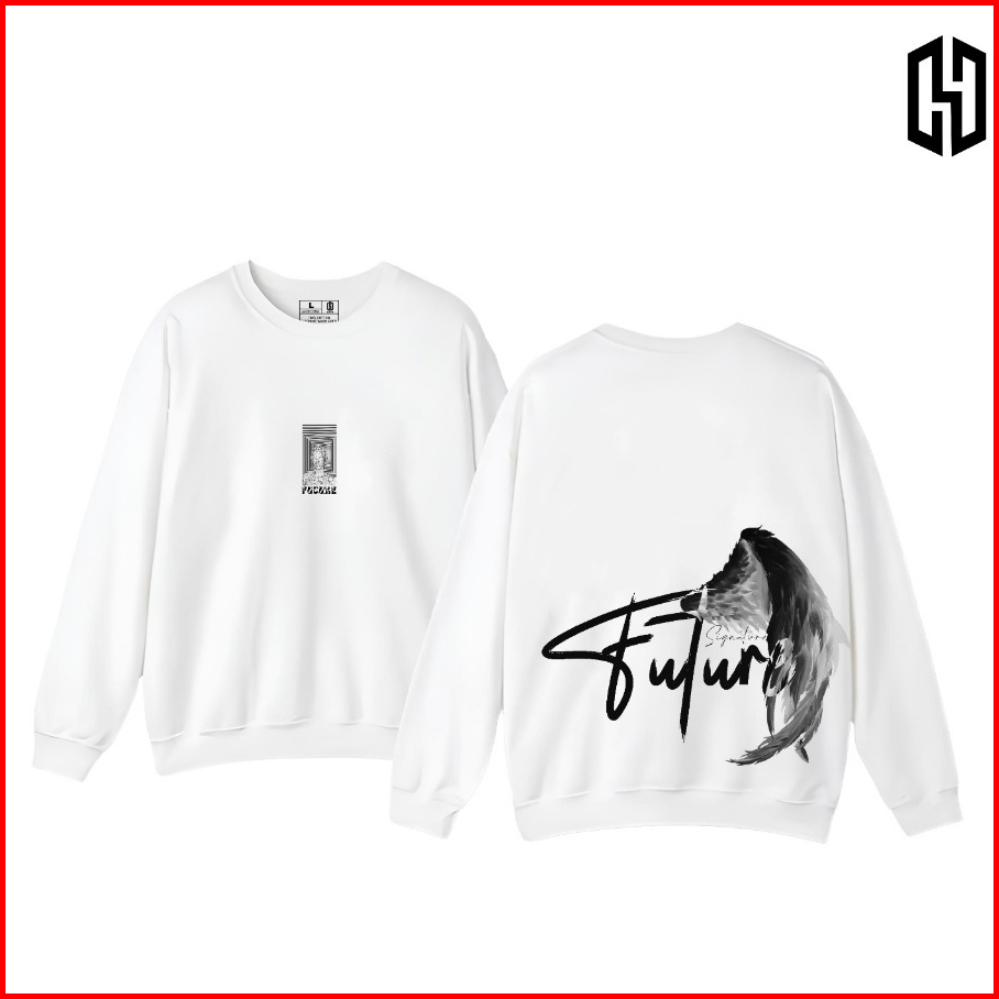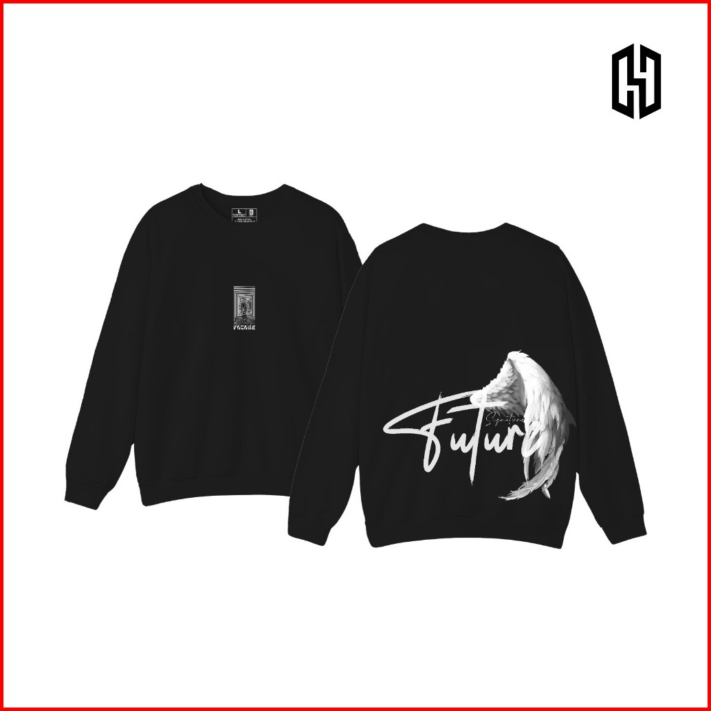Haenha Crewneck Distro - Sweater Motif Future Sablon Black White