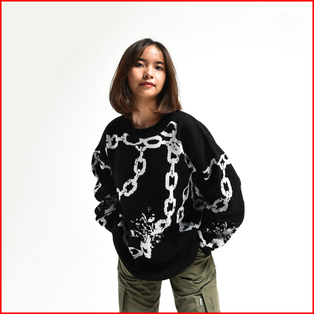 Timebomb Cardigan Knitwear Crewneck Chain Black