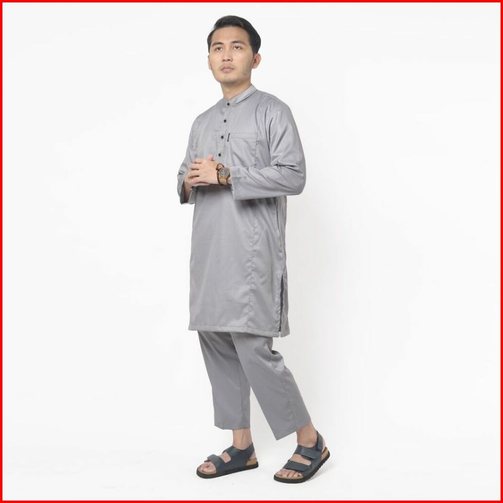 Khoirummah Kurta Khaidar Set Koko Kurta Polos Lengan Panjang Baju Muslim Set Light Grey