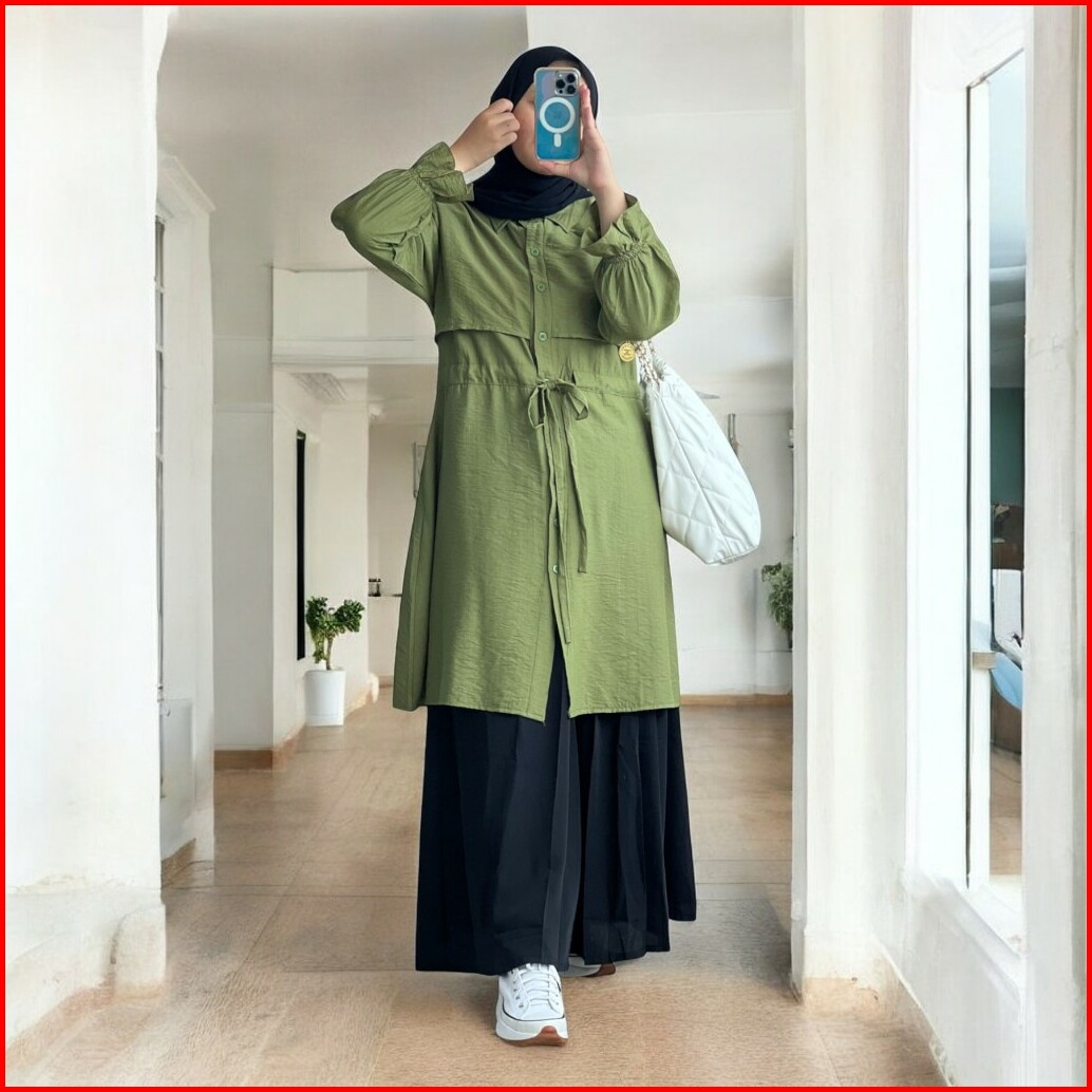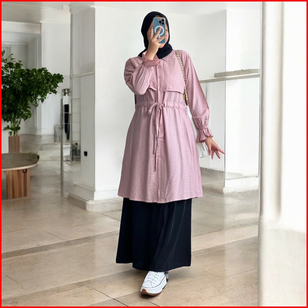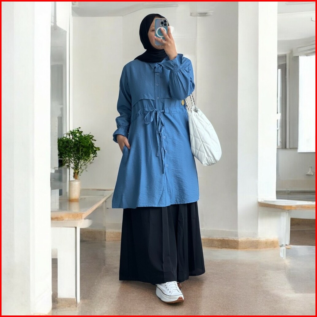 Amie Shop Rihana Shirt Atasan Kemeja Tunik Wanita Lengan Panjang Bahan Linen Outfit 2025