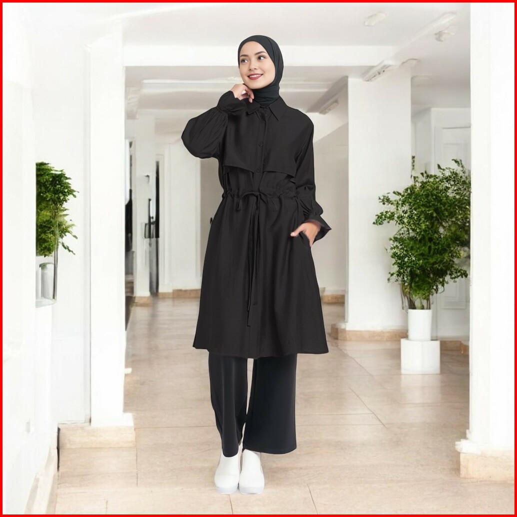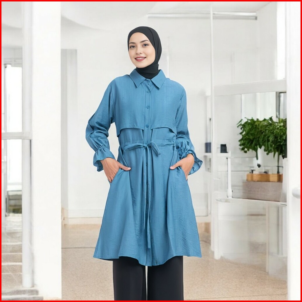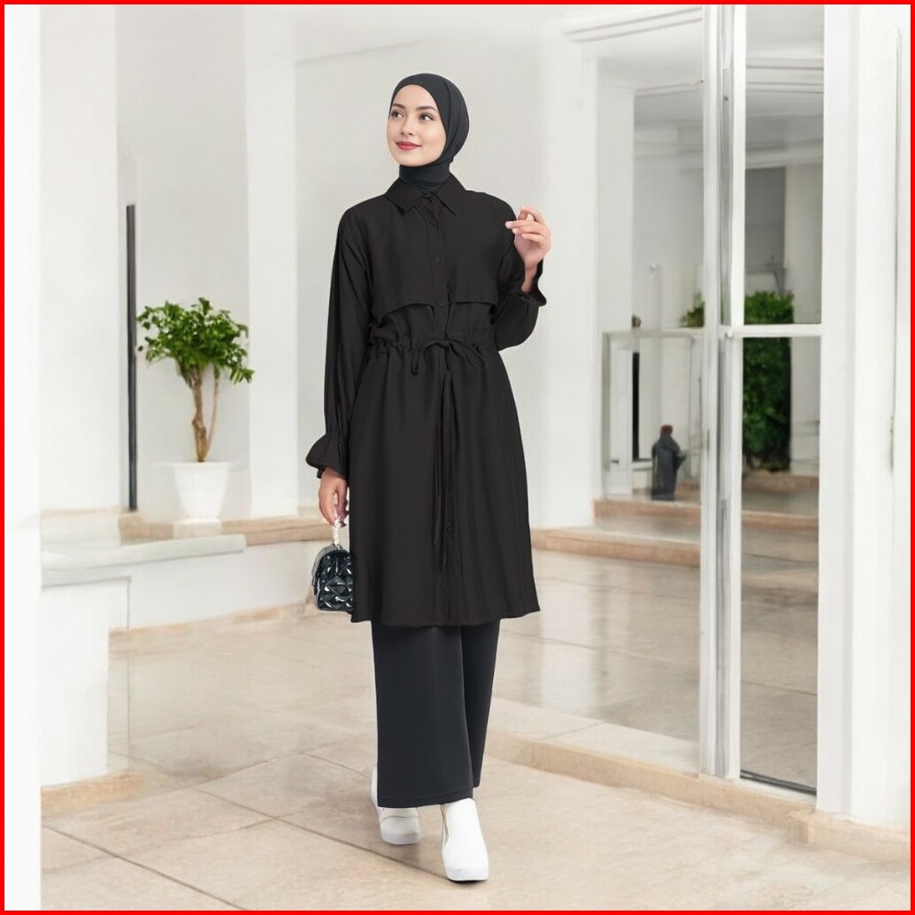 Amie Shop Rihana Shirt Atasan Kemeja Tunik Wanita Lengan Panjang Bahan Linen Outfit 2025