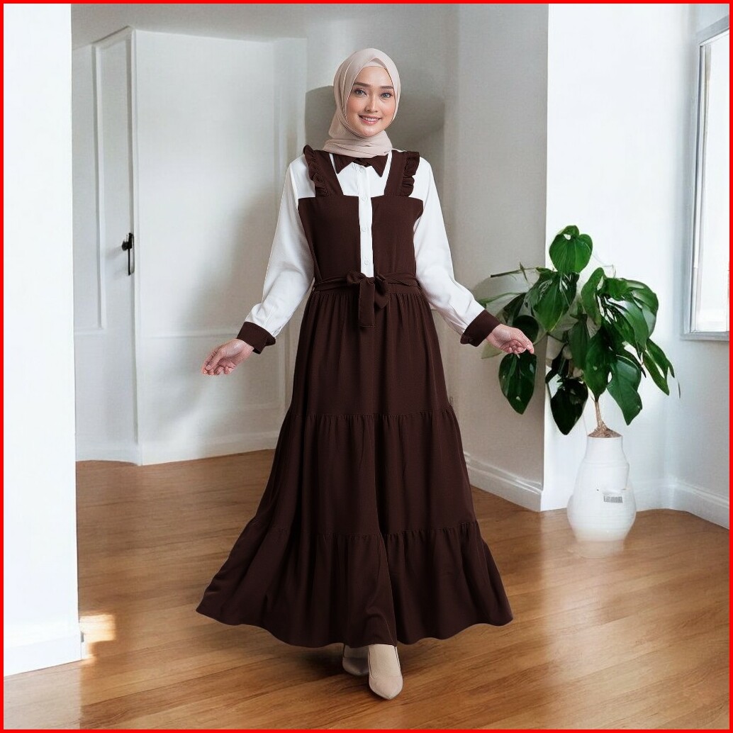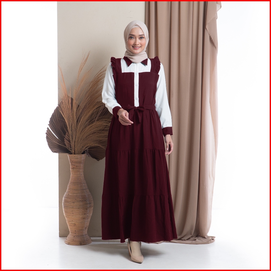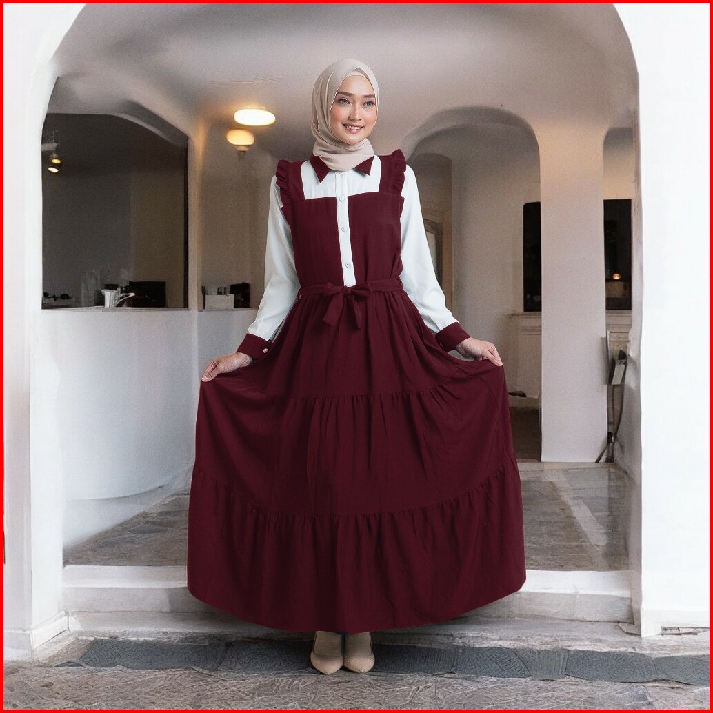 Dress Muslim Korean Style Silvana Ruffle Susun Size S M L Xl Gamis Polos Wanita Kombinasi Warna