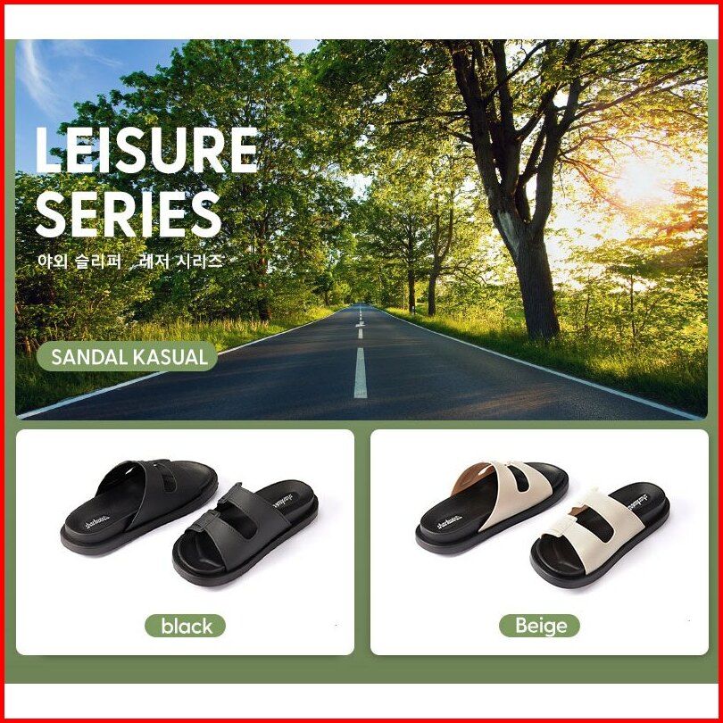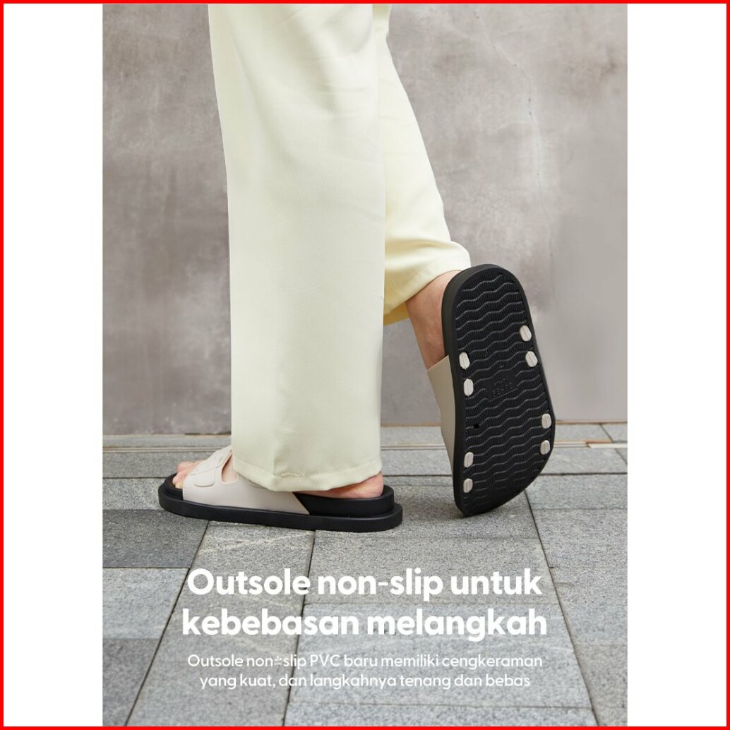 Sharkwin Sandal Wanita Korea Daily Outfit Pu Casual Anti Slip Strap Flatshoes Modern Slipper Sf30413