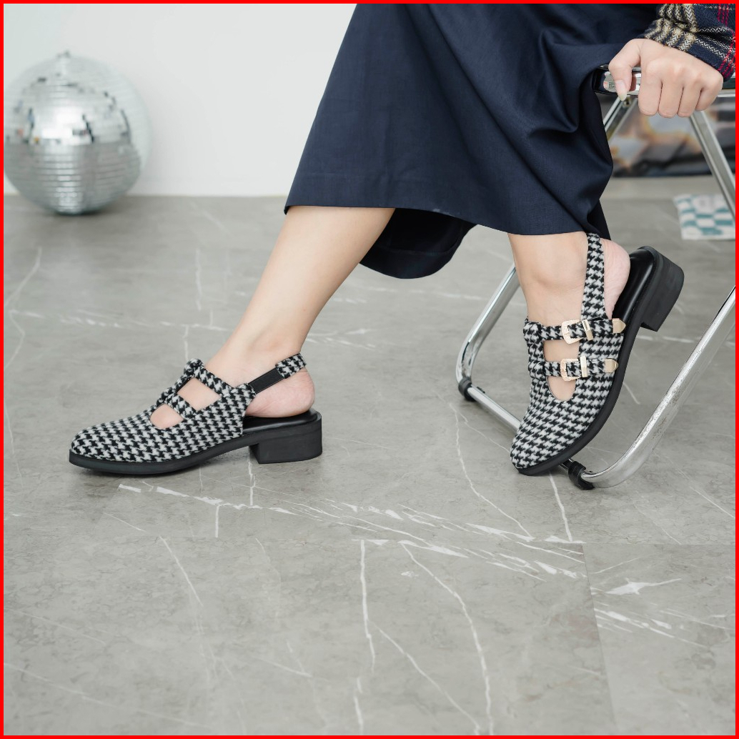 Dianable - Eleanor Ankle Strap Sepatu Wanita Black - Beige - Houndstooth