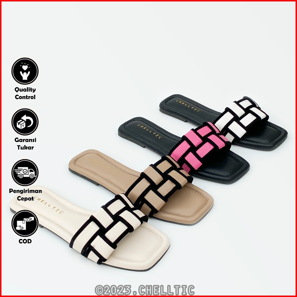 Sandal Wanita Kekinian Sandal Selop Flat Teplek Wanita Terbaru Sendal Rumah Casual Selop Slip On Cewek Motif Anyam Trend
