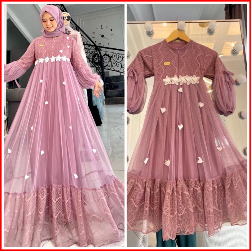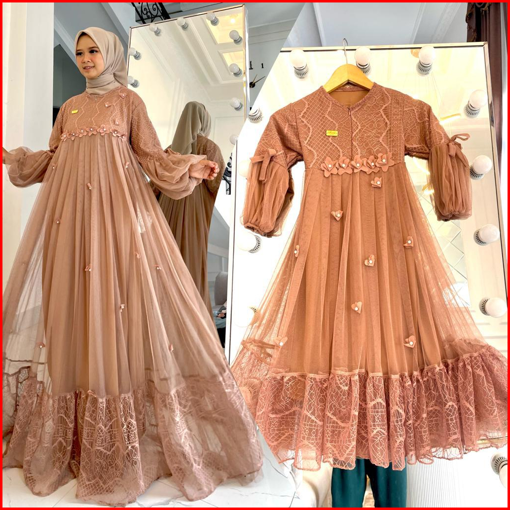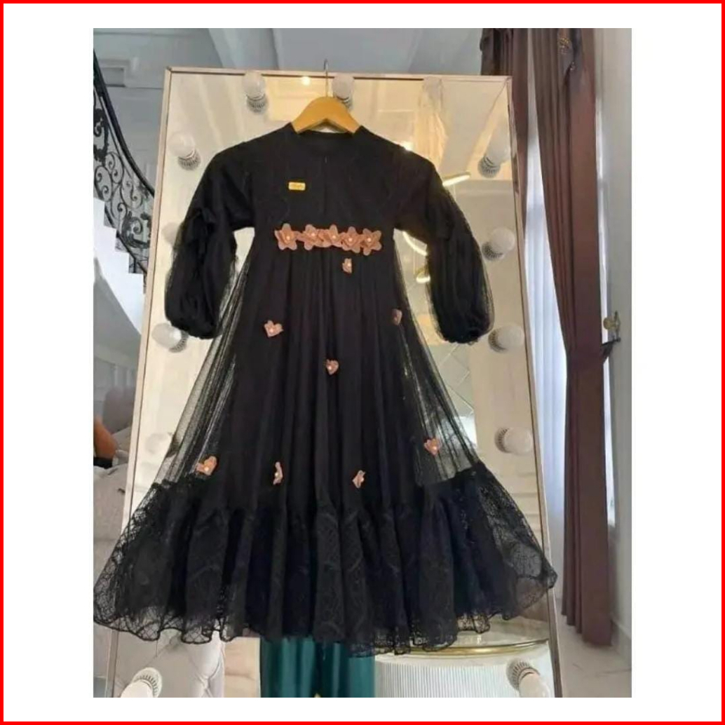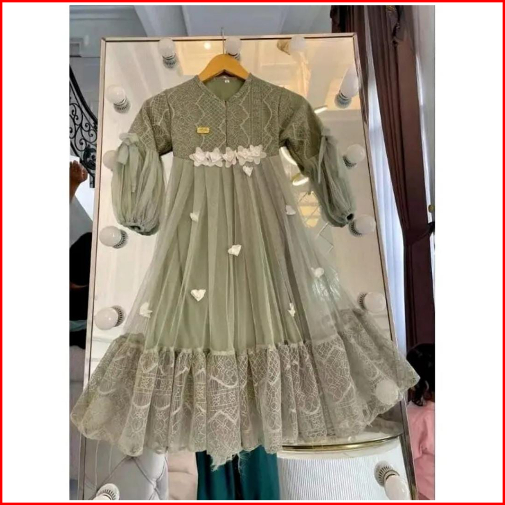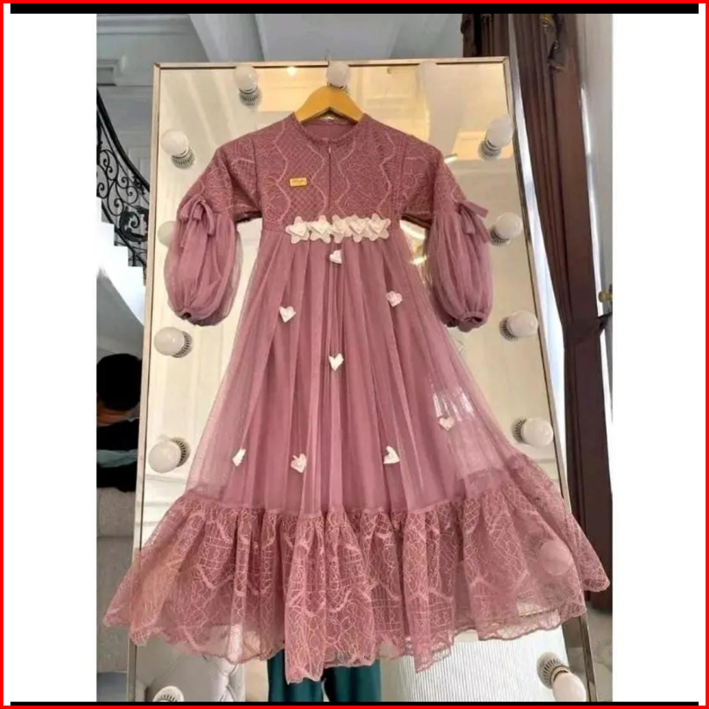 Gamis Pesta Anak Perempuan Brukat Motif Bunga Bunga S M L Xl