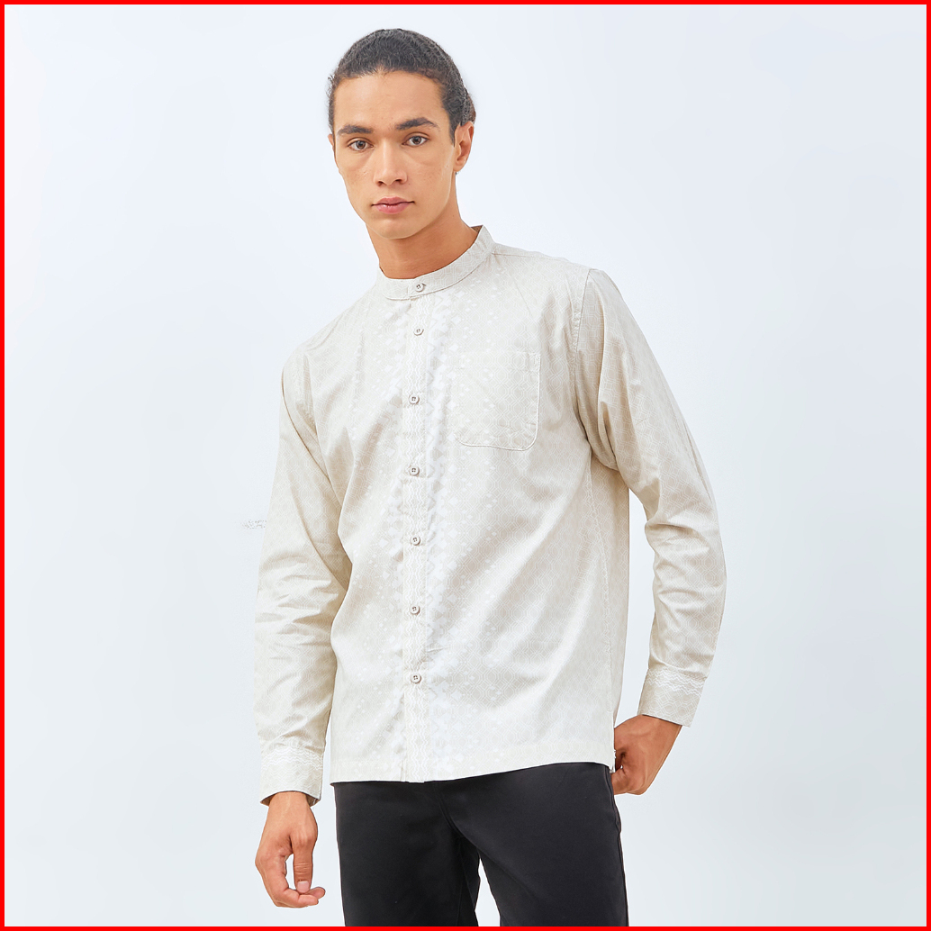 M231 Kemeja Pria Koko Couple Panjang Cream 0194b