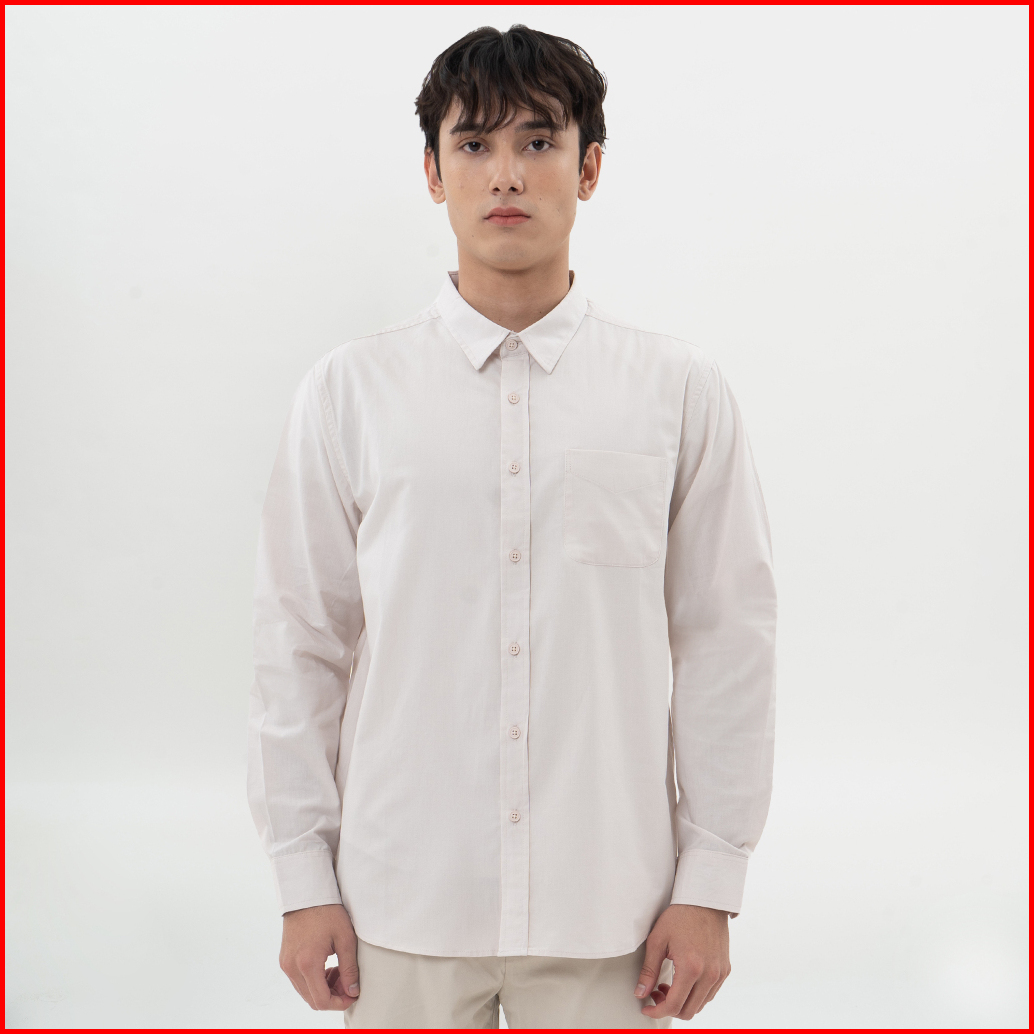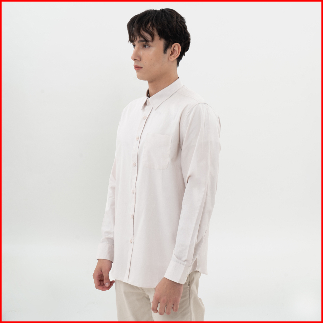 M231 Kemeja Pria Basic Polos Panjang Cream 0642a