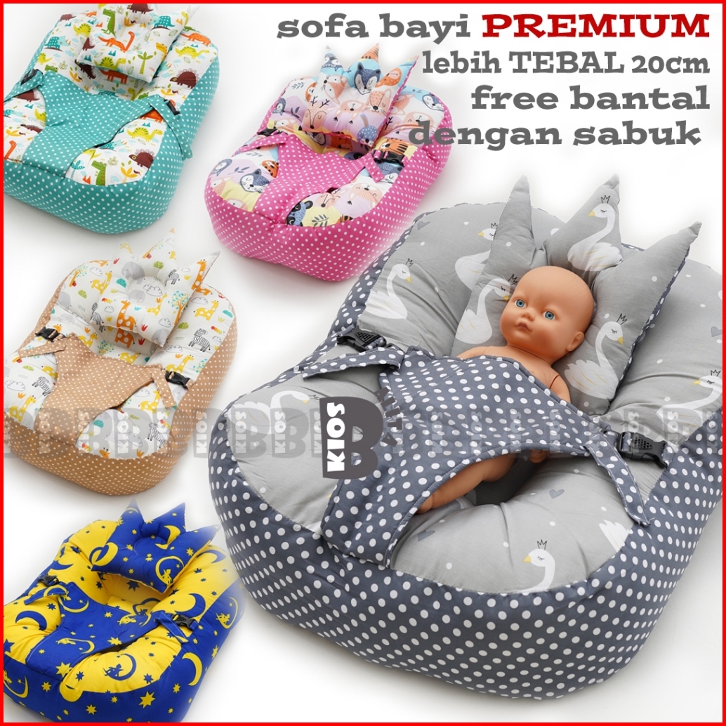 Premium Kasur Bayi Multifungsi Sofa Bayi Dengan Gesper Safety Belt Premium Tebal Free Bantal Peyang Crown