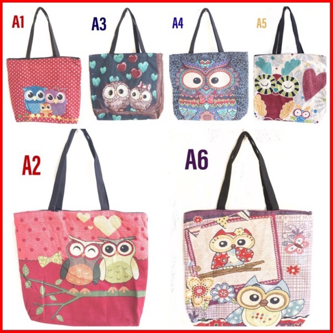 Tas Tote Bags Kanvas Thailand Import Hantu Night Owl Series