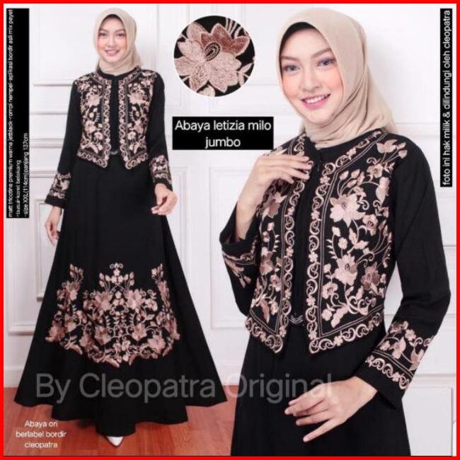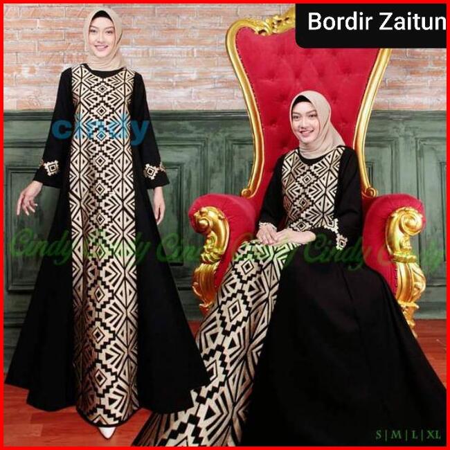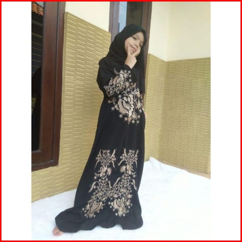 Abaya Gamis Maxi Dress Arab Saudi Bordir Dela Turki Umroh Dubai Turkey India Jetblack Hitam Syari Couple Ibu Dan Anak