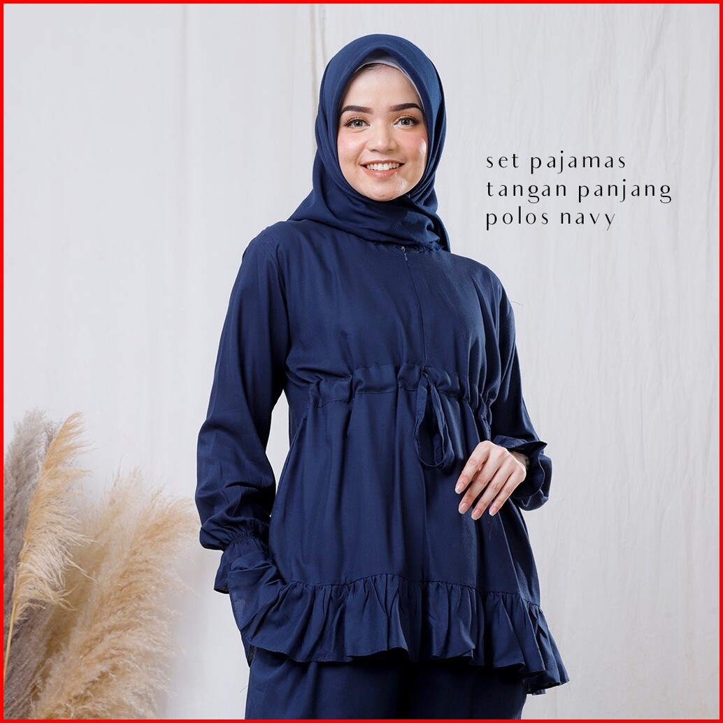 Pusat Mukena Indonesia - Pajamas Set Celana Muslim Polos Busui Friendly Plain
