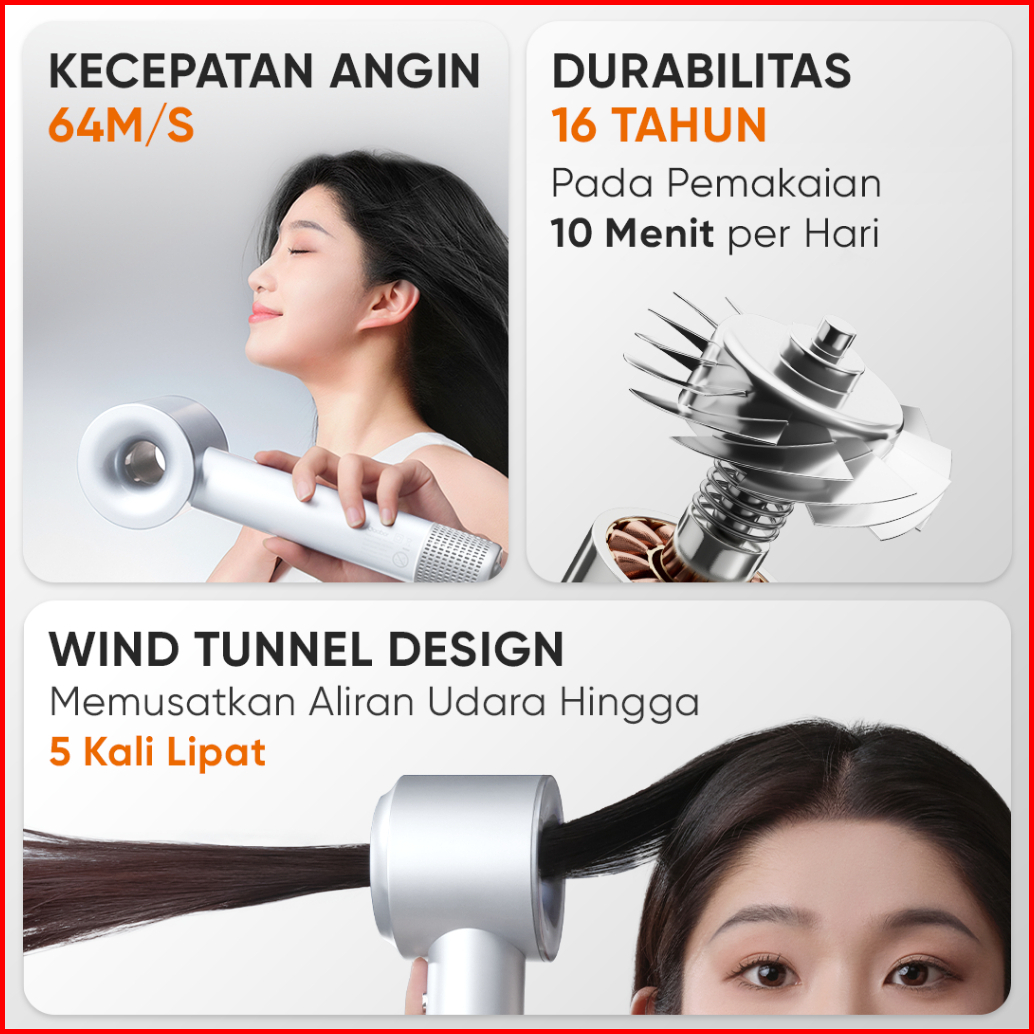 Gaabor High Speed Hair Dryer Fast Drying 8 Drying Mode Lightweight Pengering Rambut With Magnetic Nozzle Hd-m01 Series