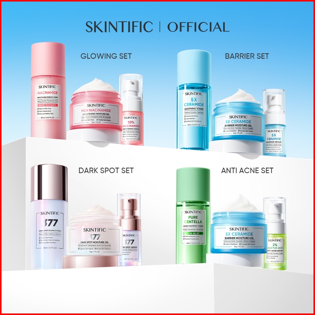 Skintific Authorized 3pcs Skincare Set 5x Ceramide Cleanser Serum Moisturizer Gel Glowing Barrie Acner Anti-aging Exfoli