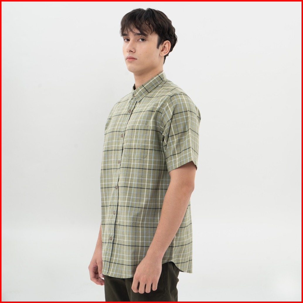 M231 Kemeja Pria Yarn Dyed Kotak Pendek Hijau 0670