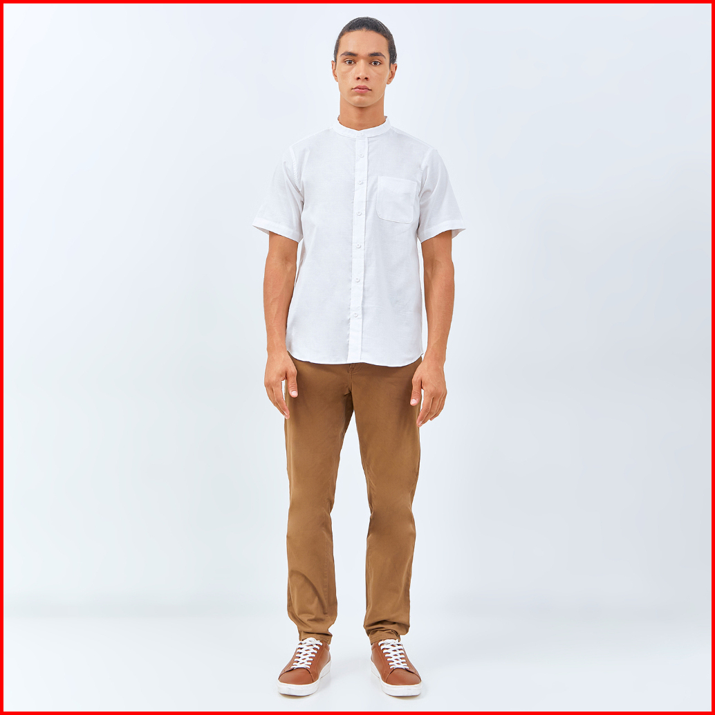 M231 Kemeja Pria Shanghai Polos Pendek Putih 0184j