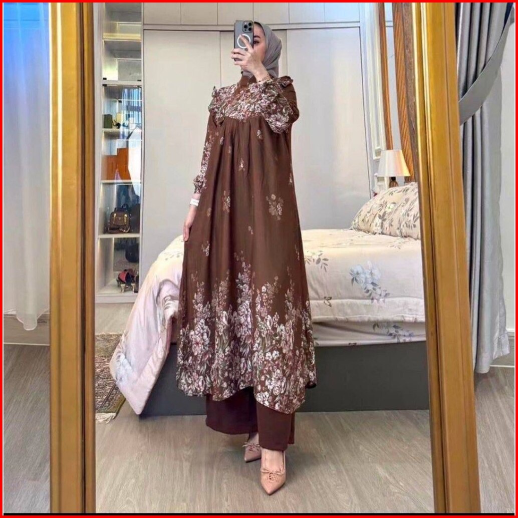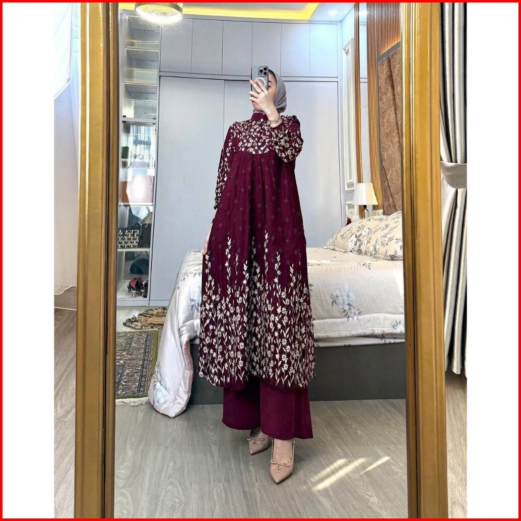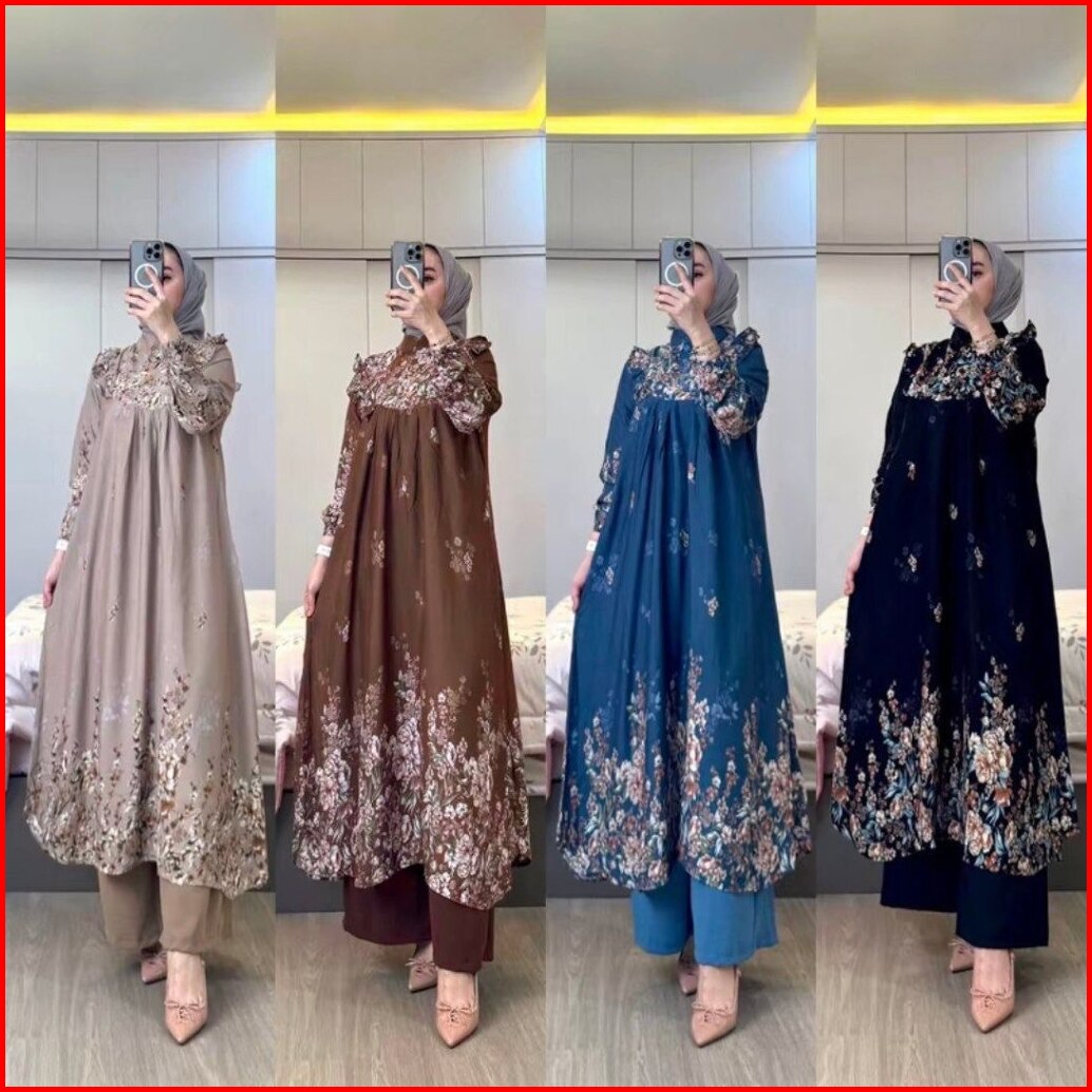 One Set Setelan Allisa Setelan Jumbo Ld110 Ld120 Setelan Wanita Baju Muslim Setelan Tunik Celana