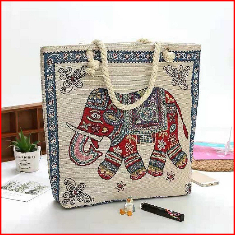 Tas Tote Bag Gajah Wanita Besar Kanvas Thailand Import