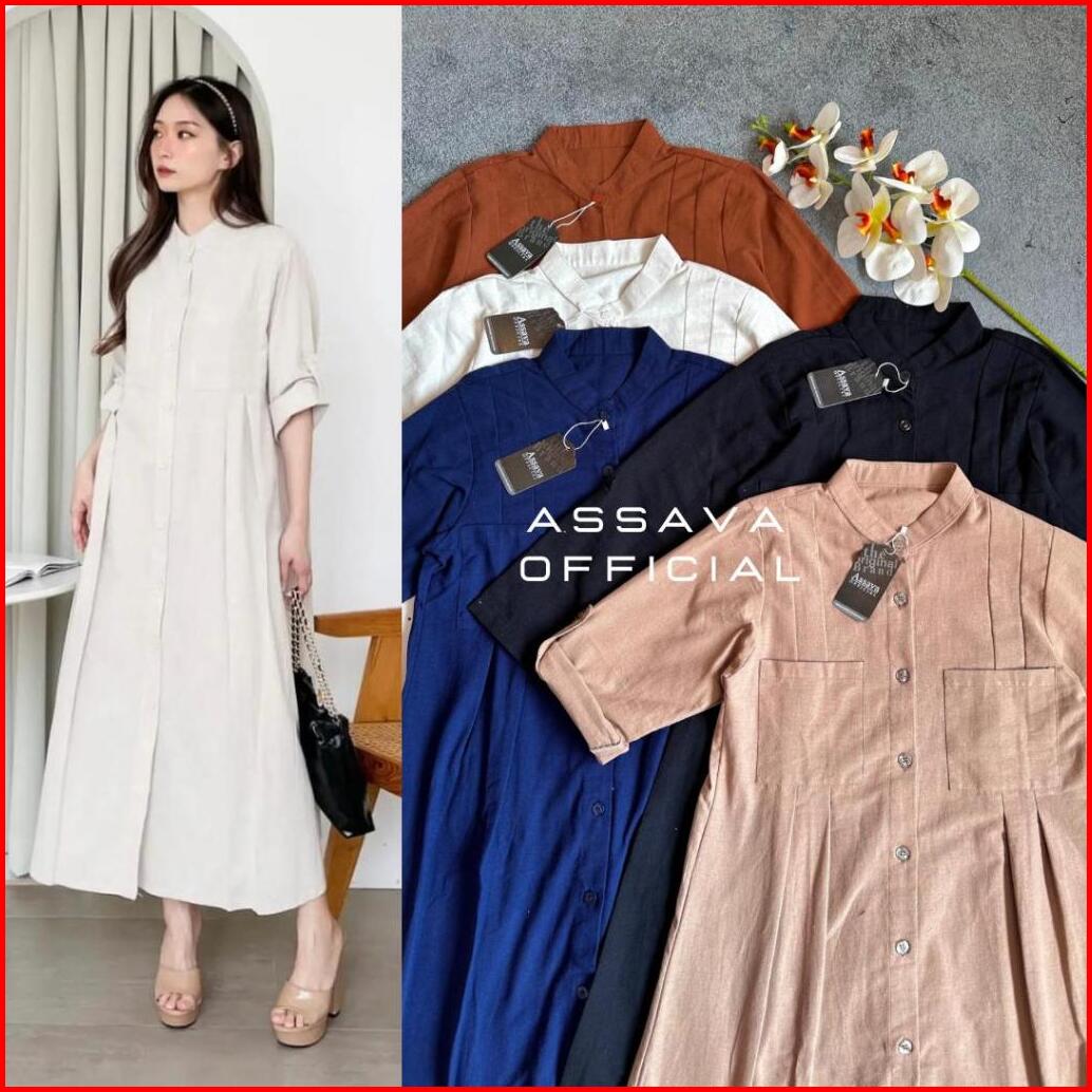 Lily Dress Linen Premium - Gamis Full Kancing Linen Premium - Gamis Wanita Busui Friendly