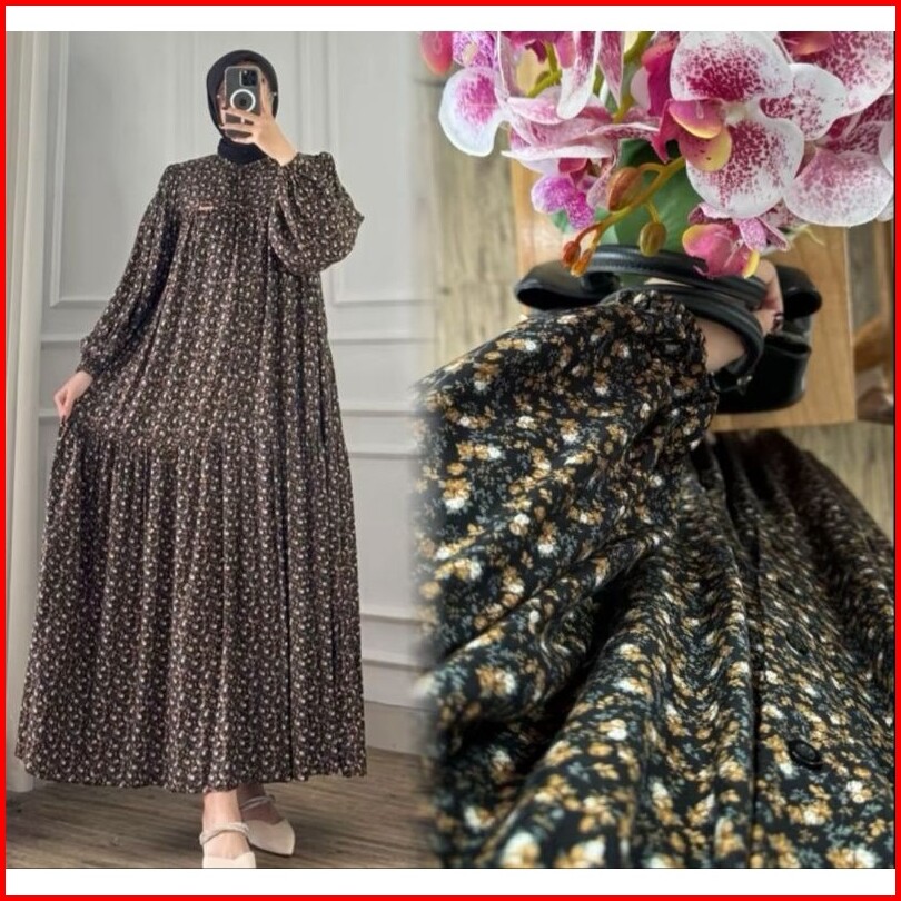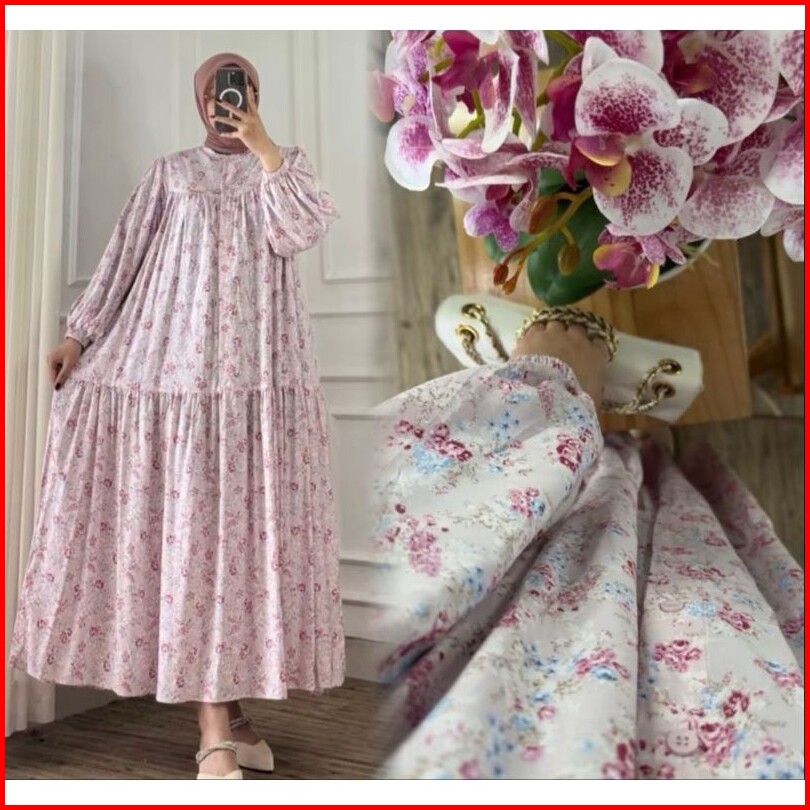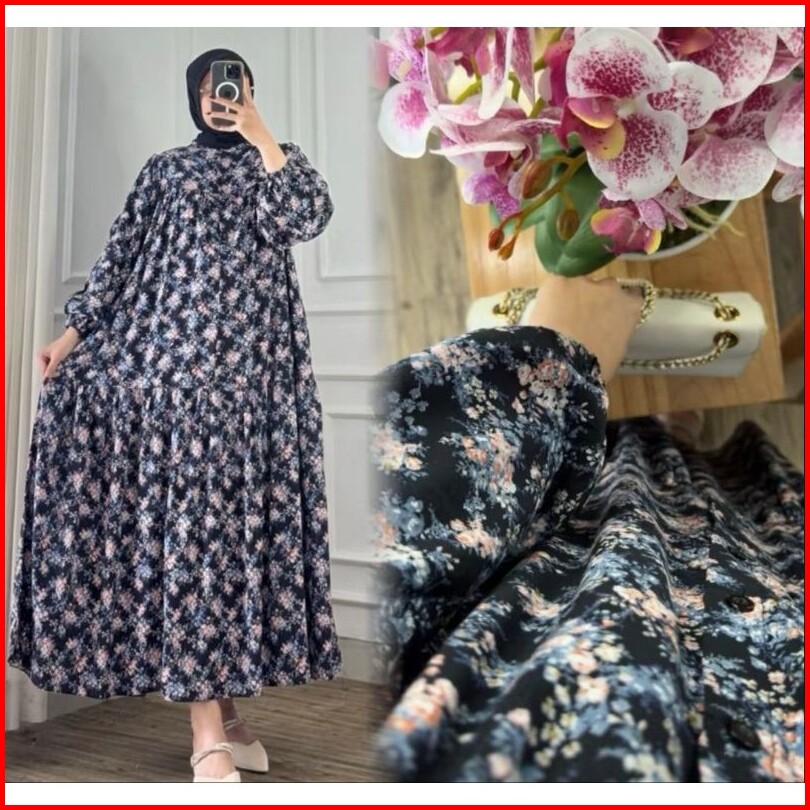 New Gamis Midi Dress Premium Import Terbaru Motif Bunga Cantik Midi Dress Rayon Wanita Dewasa Jumbo Busui Terlaris Gamis