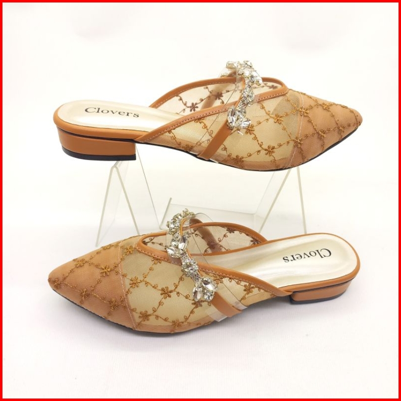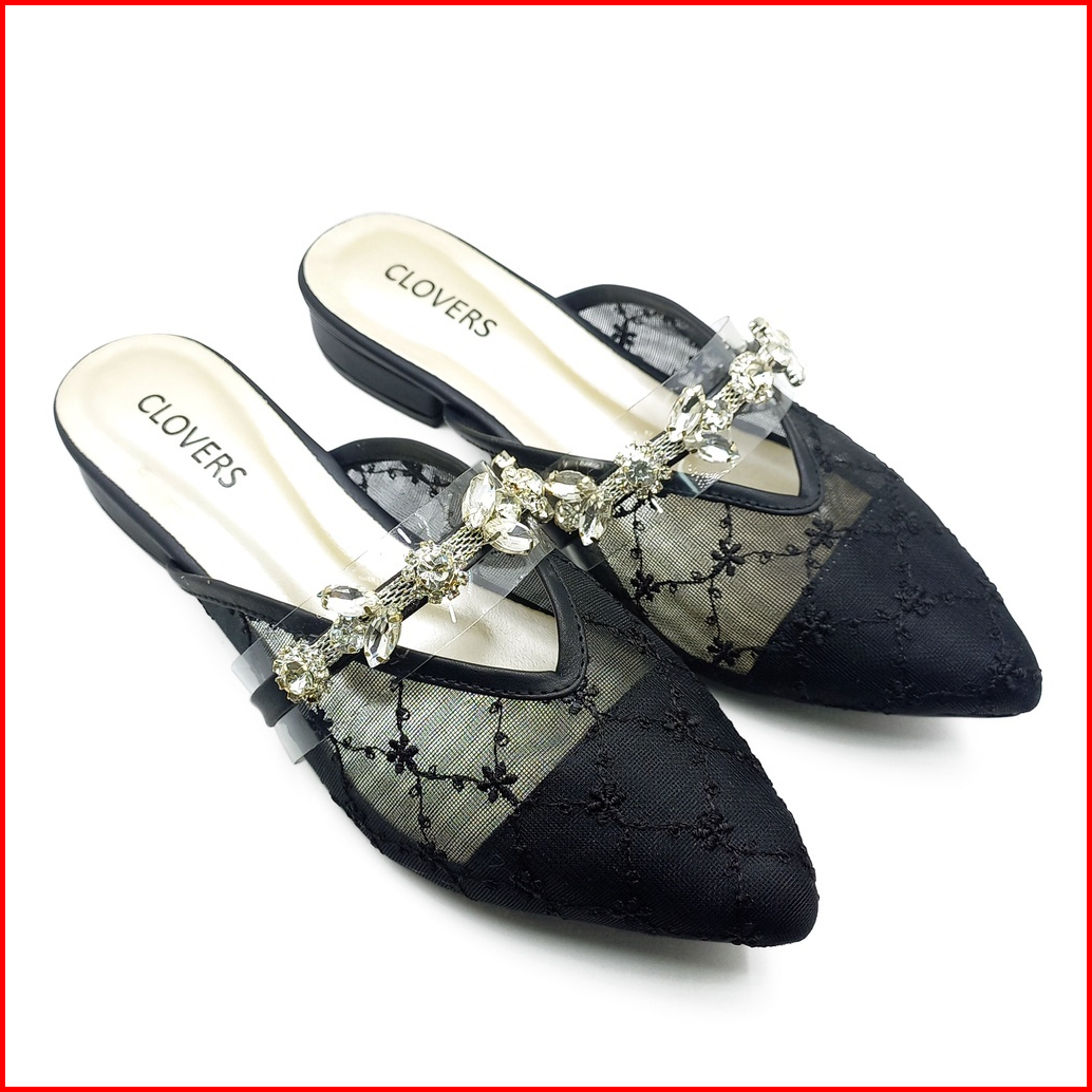 Cl310 Clovers Shoes Sandal Sepatu Wanita Brukat Flat Variasi Permata Hak Tahu 2 Cm