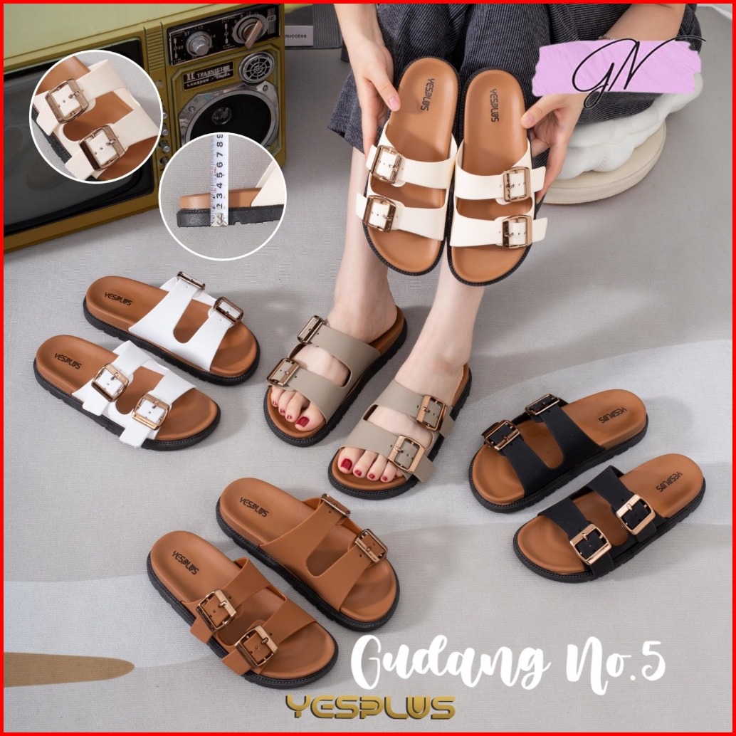 Gn-2508 Sandal Selop Flat Sandal Jelly Teplek Wanita Tali Gesper Import Pcu