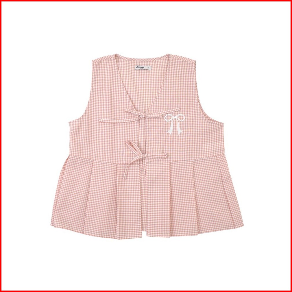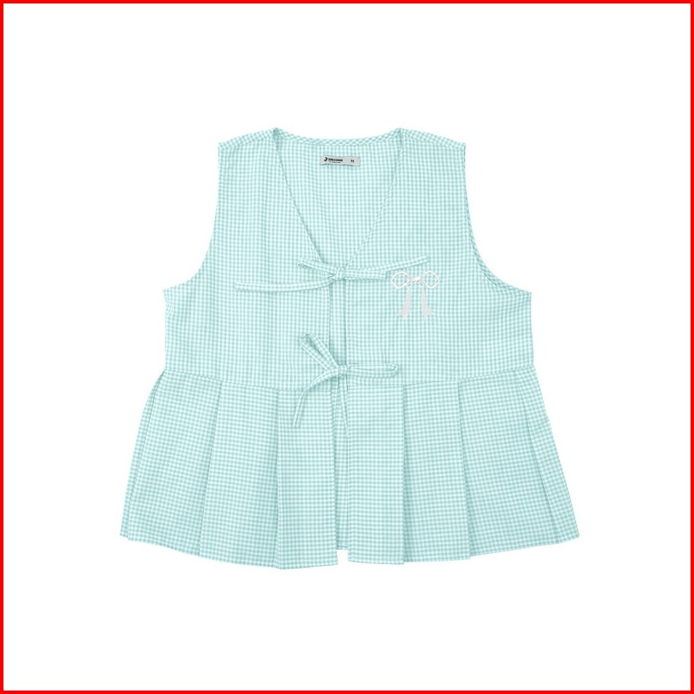 3second Kemeja Wanita Tanpa Lengan Kotak-kotak Pleated Peplum Carmila C021024