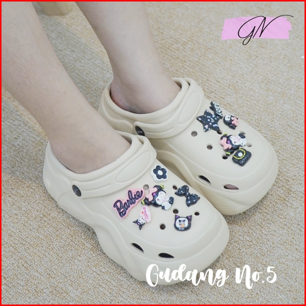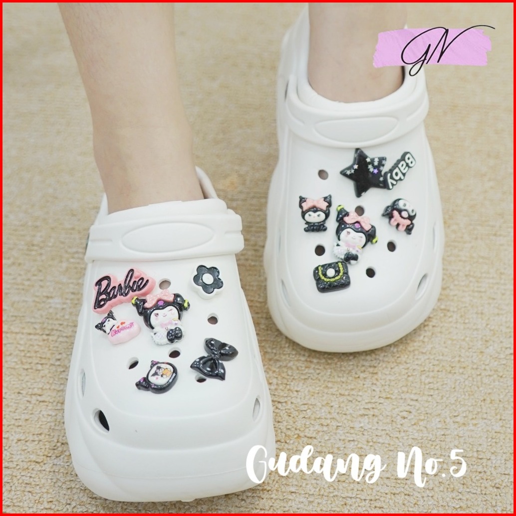Gn-9188-2 Sandal Baim Eva Rubber Sandal Fuji Tinggi 8cm Jibbitz Kuromi X Barbie Import Terbaru
