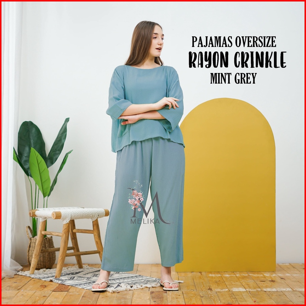Pusat Mukena Indonesia - Pajamas Set Celana Rayon Crinkle Oversize