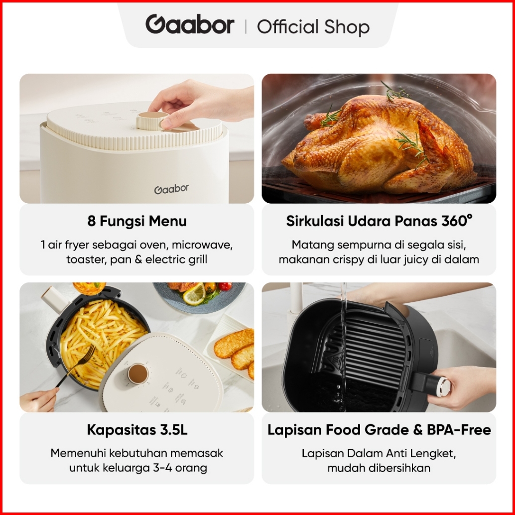Gaabor Air Fryer 3.5l Mesin Penggorengan Tanpa Minyak Low Watt Multifungsi Serbaguna Af35m Series