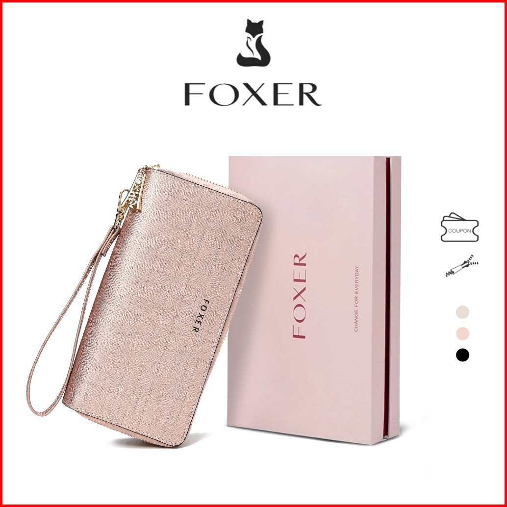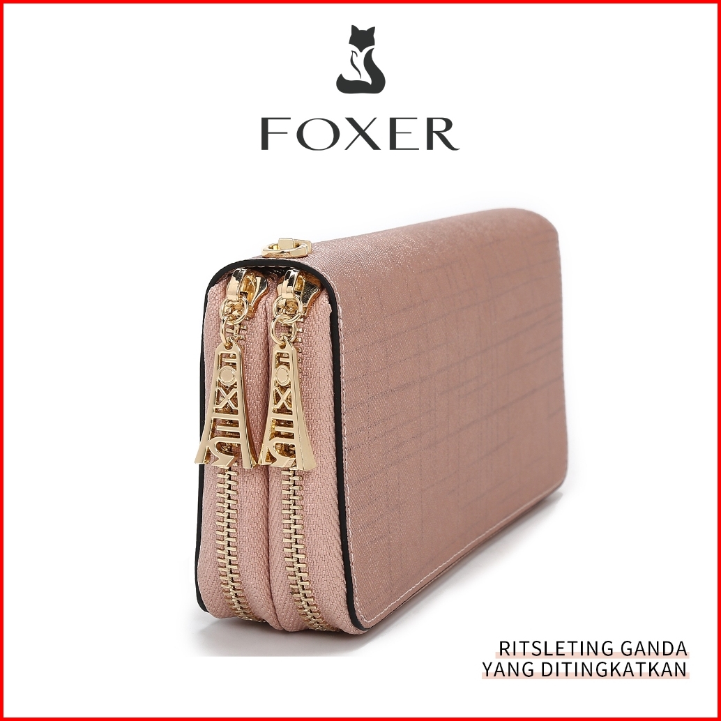 Foxer Dompet Panjang Dompet Ritsleting Ganda Dompet Kulit Tas Genggam Desain Sederhana