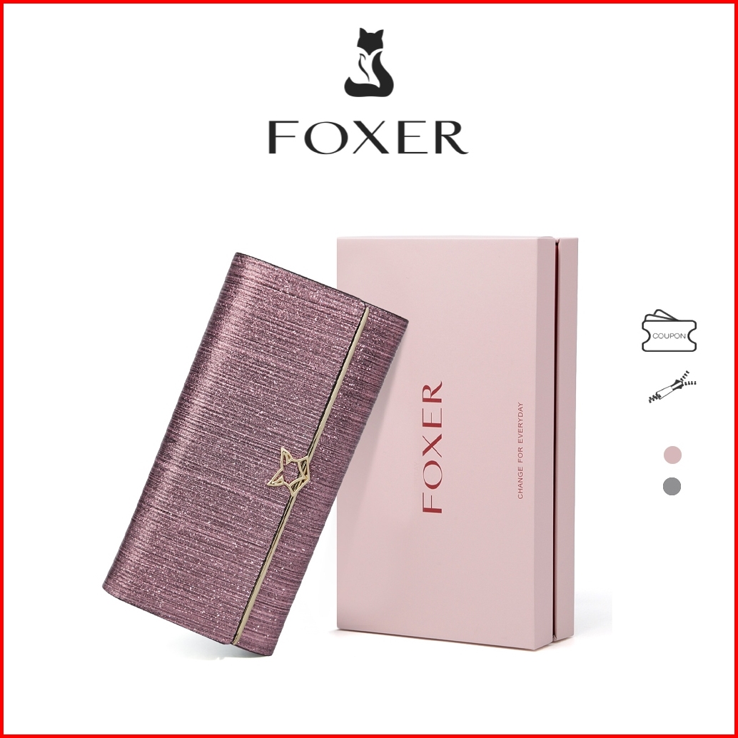 Foxer Dompet Wanita Dompet Kulit Sapi Mewah Dan Modis Tempat Kartu Kredit Tas Genggam Dompet Panjang