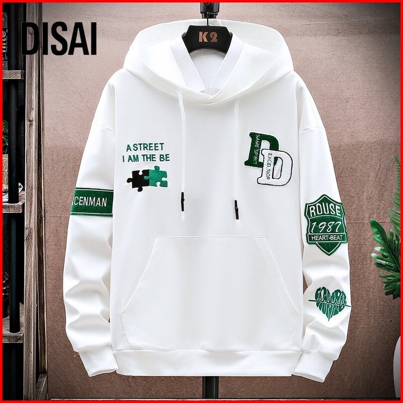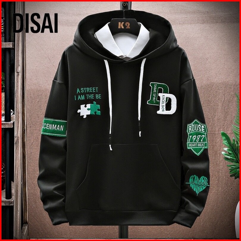 Disai - Hoodie Pria Bordir Handuk Sulaman Sweater Kaos Hoodies Lengan Panjang Bahan Polyester W22731a