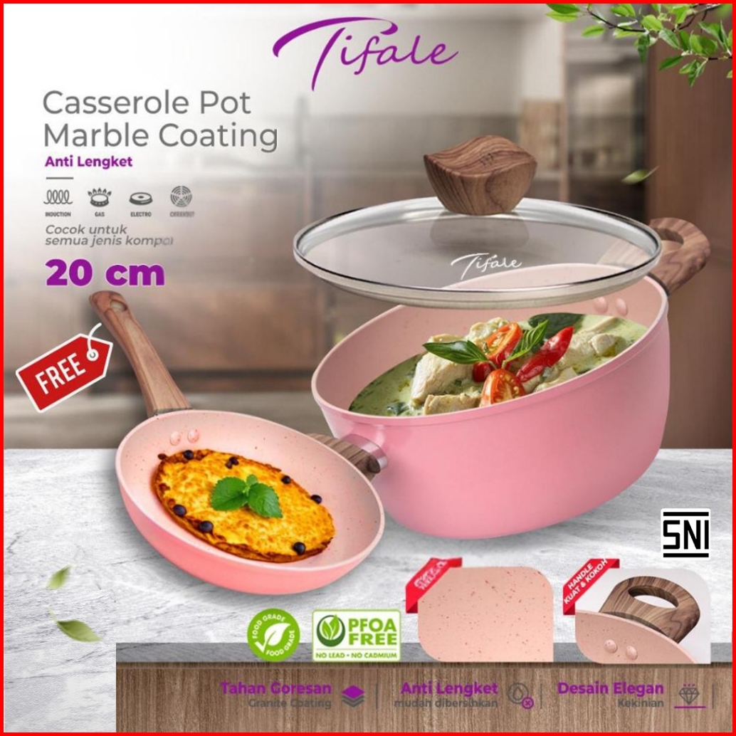 Buy1get2 Tifale Alice Casserole Pan 20cm Free Frypan 16cm Anti Lengket