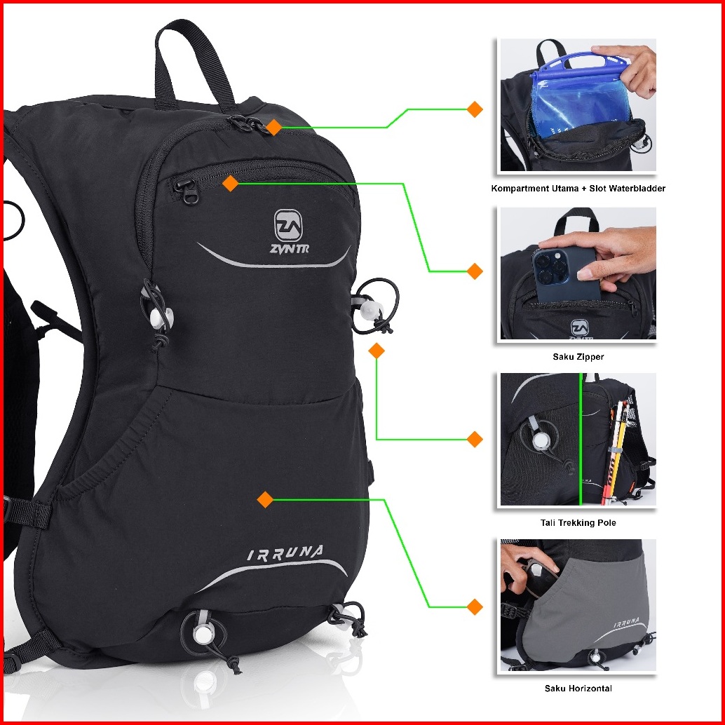Zarventure Irruna Tas Hydropack Vest Running 10 Liter Hydration