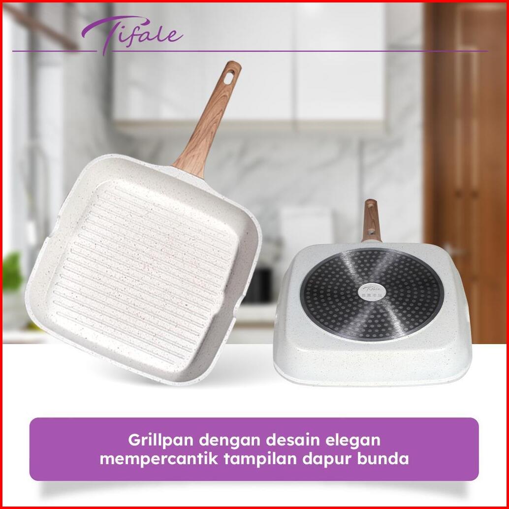 Tifale Grill Pan 28 Cm White Granit Grillpan Pemanggang Peralatan Masak Dapur Anti Lengket