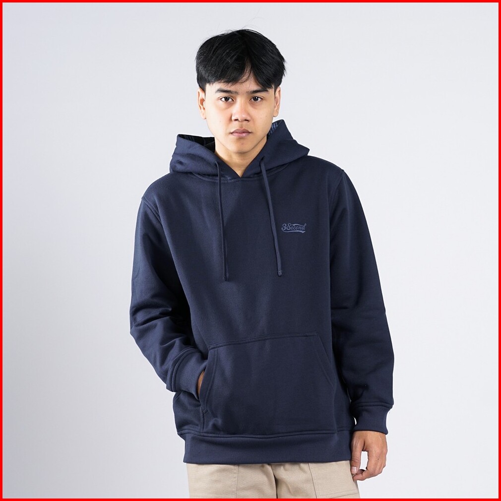 3second Jaket Pria Hoodie Sweatshirt Regular Fit Fleece Logo Script Morse Hp-c011224