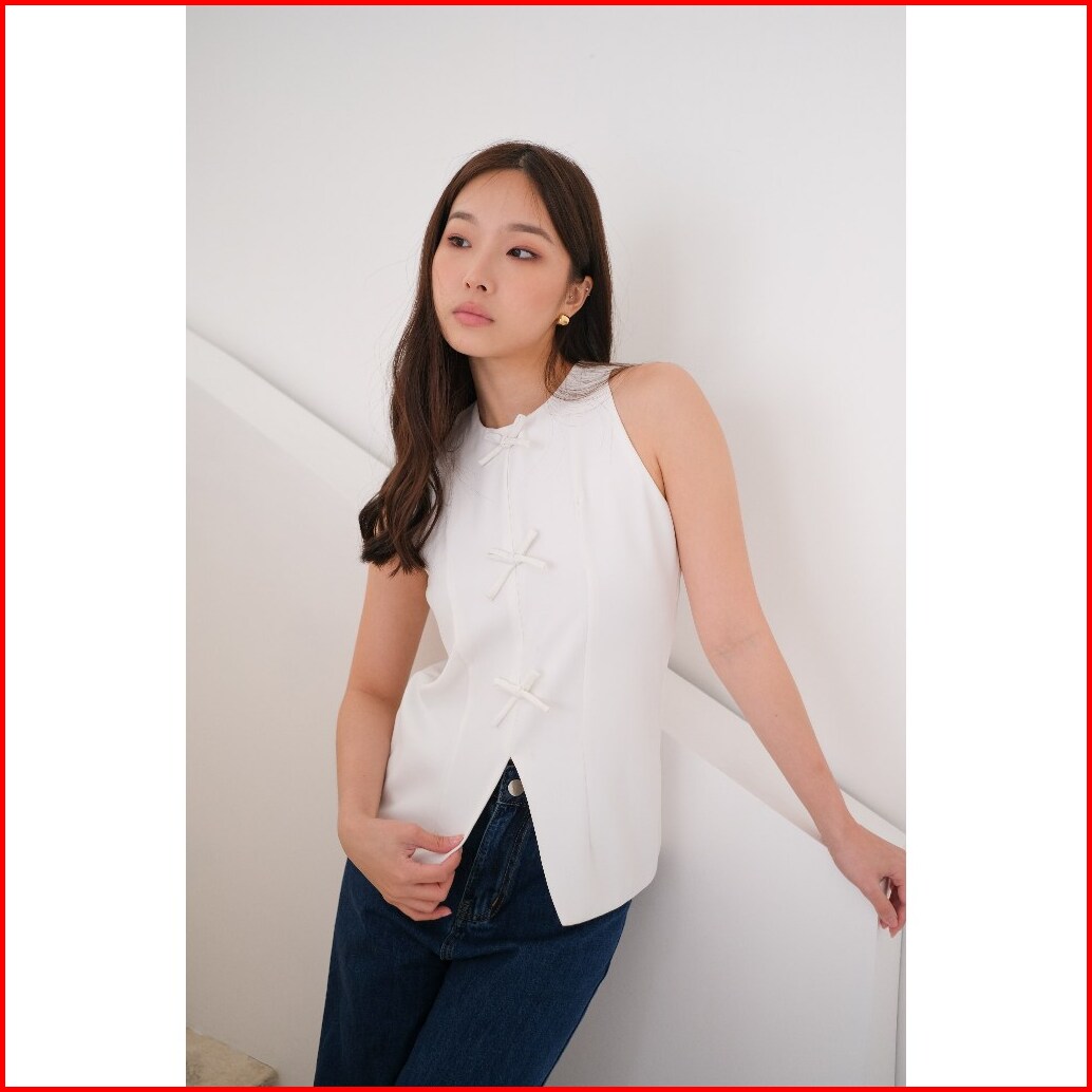 Kiyorawears - Clau Ribbon Top Atasan Vest Wanita Blouse Casual Atasan Wanita Kekinian Baju Atasan Wanita Terbaru Rompi K