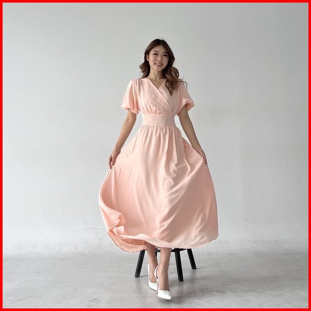 Kiyorawears - Marie Dress Dress Panjang V Neck Wanita