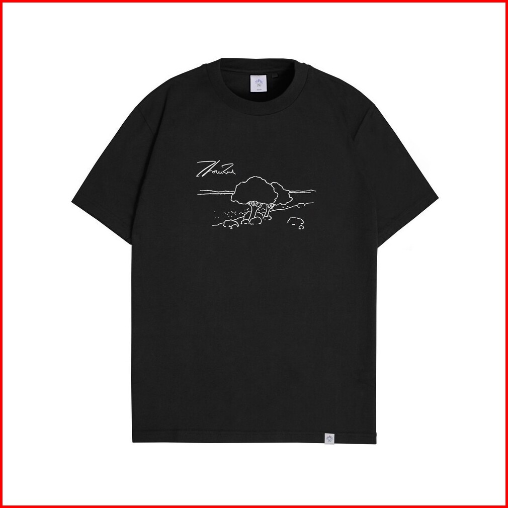 3second Kaos Pria Lengan Pendek Tree Line Art Atasan Casual Simple T-shirt Three2nd C040224