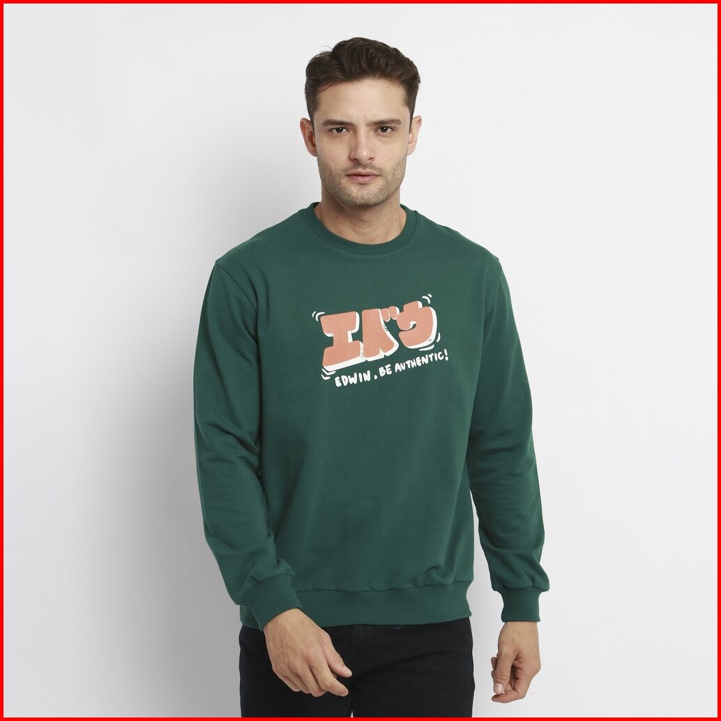 Edwin Jeans - Sweater 2.0 Beauthentic Green Outer Casual Pria Lengan Panjang Baju Atasan Top Man Sweater Crewneck