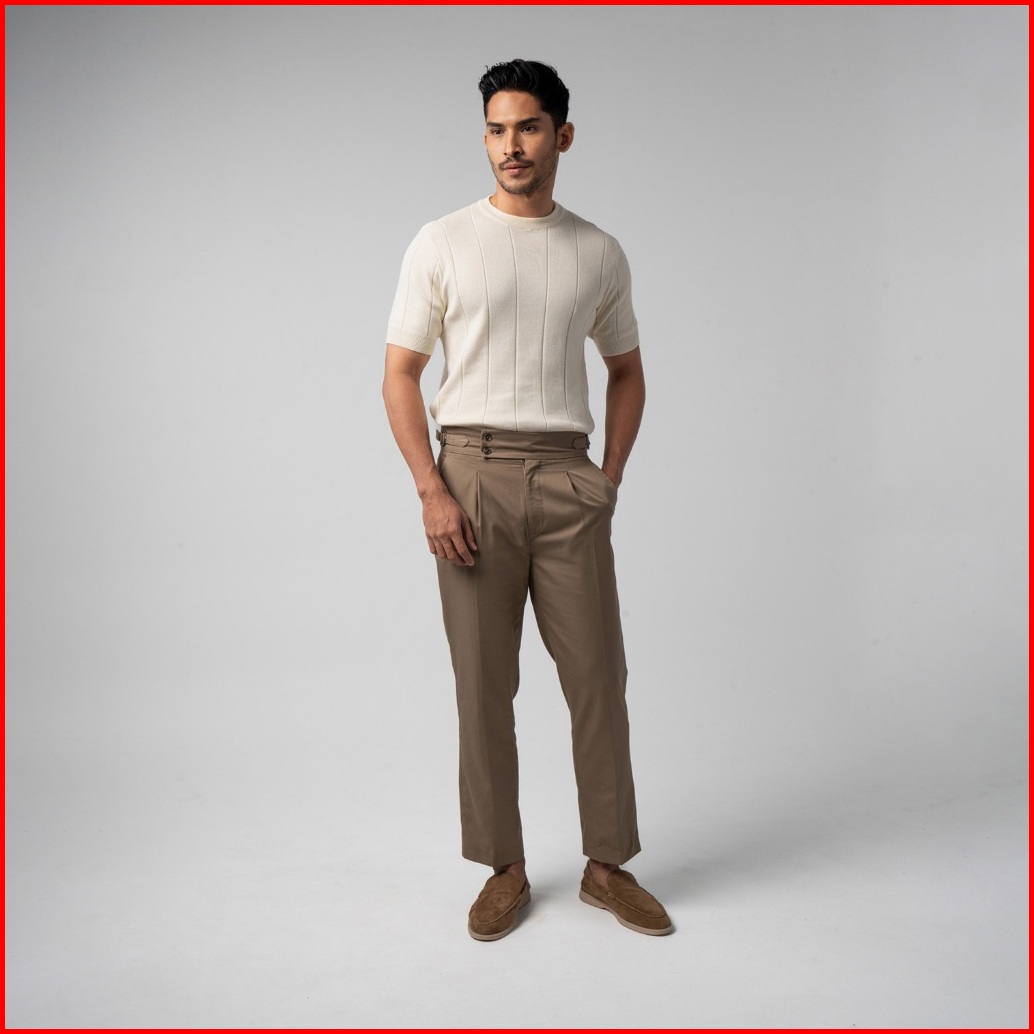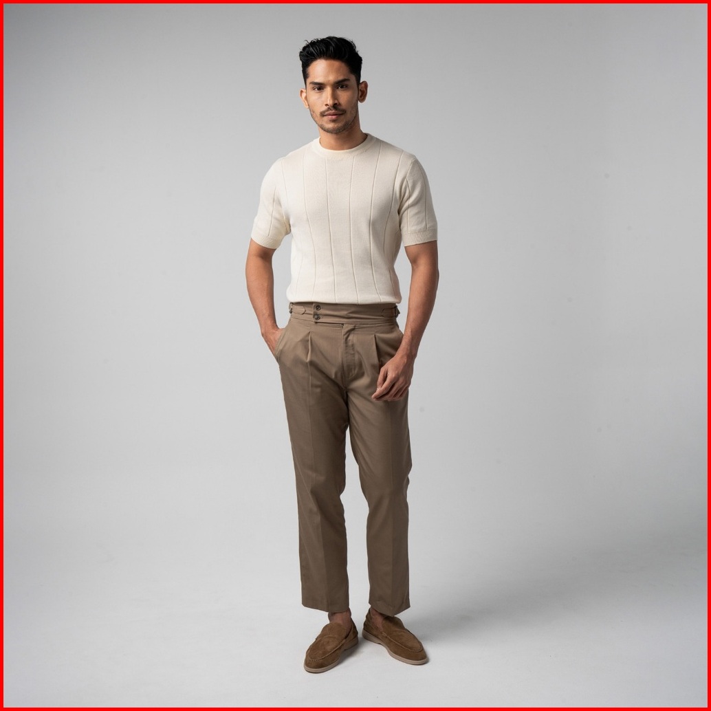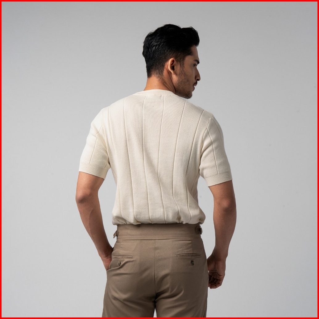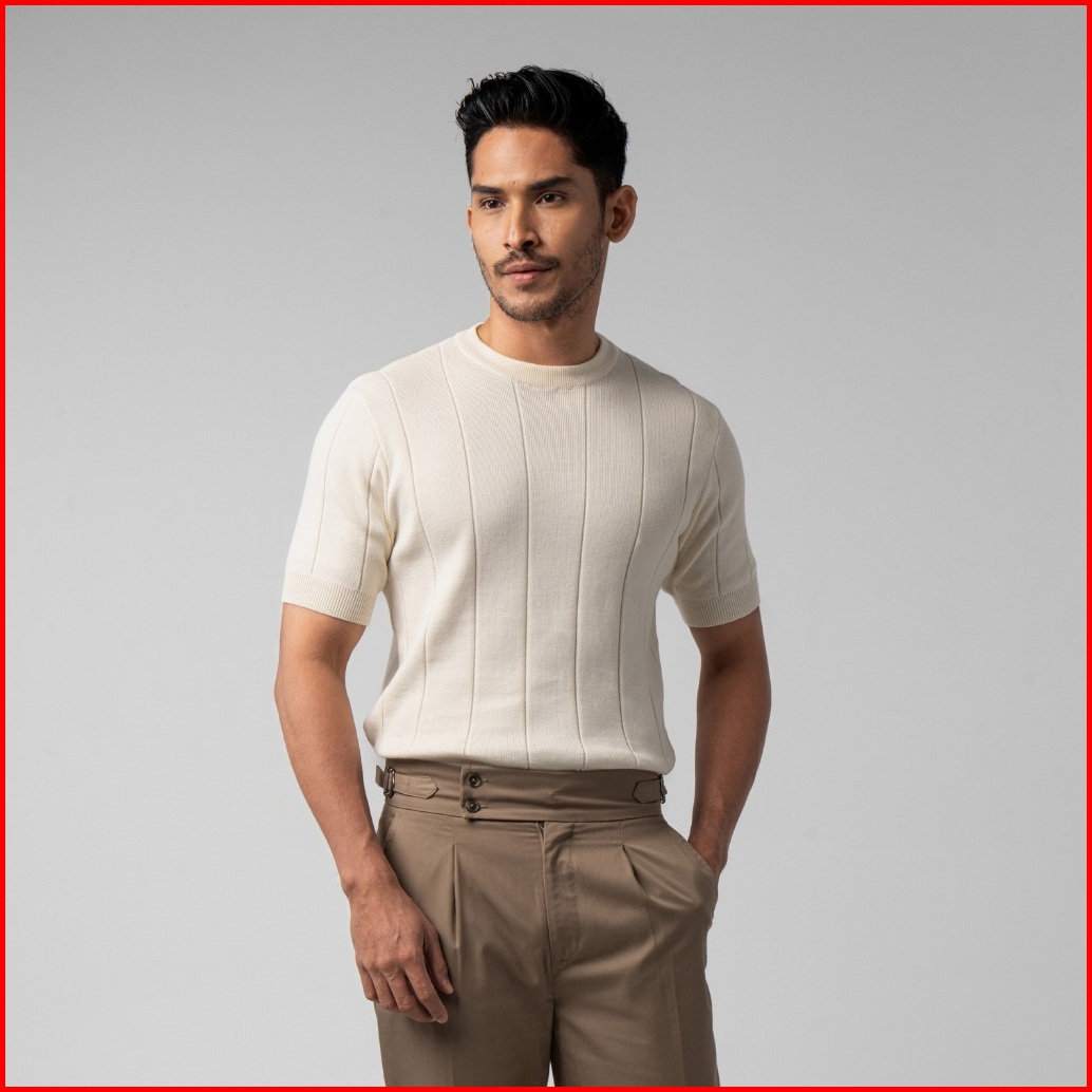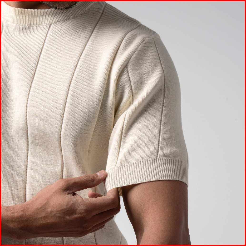 Vengoz Kaos Rajut Pria Premium - Mens Striped Knitted T-shirt Cotton Off White Ss