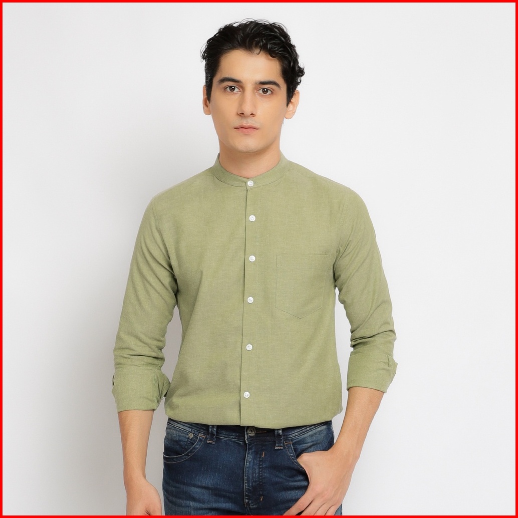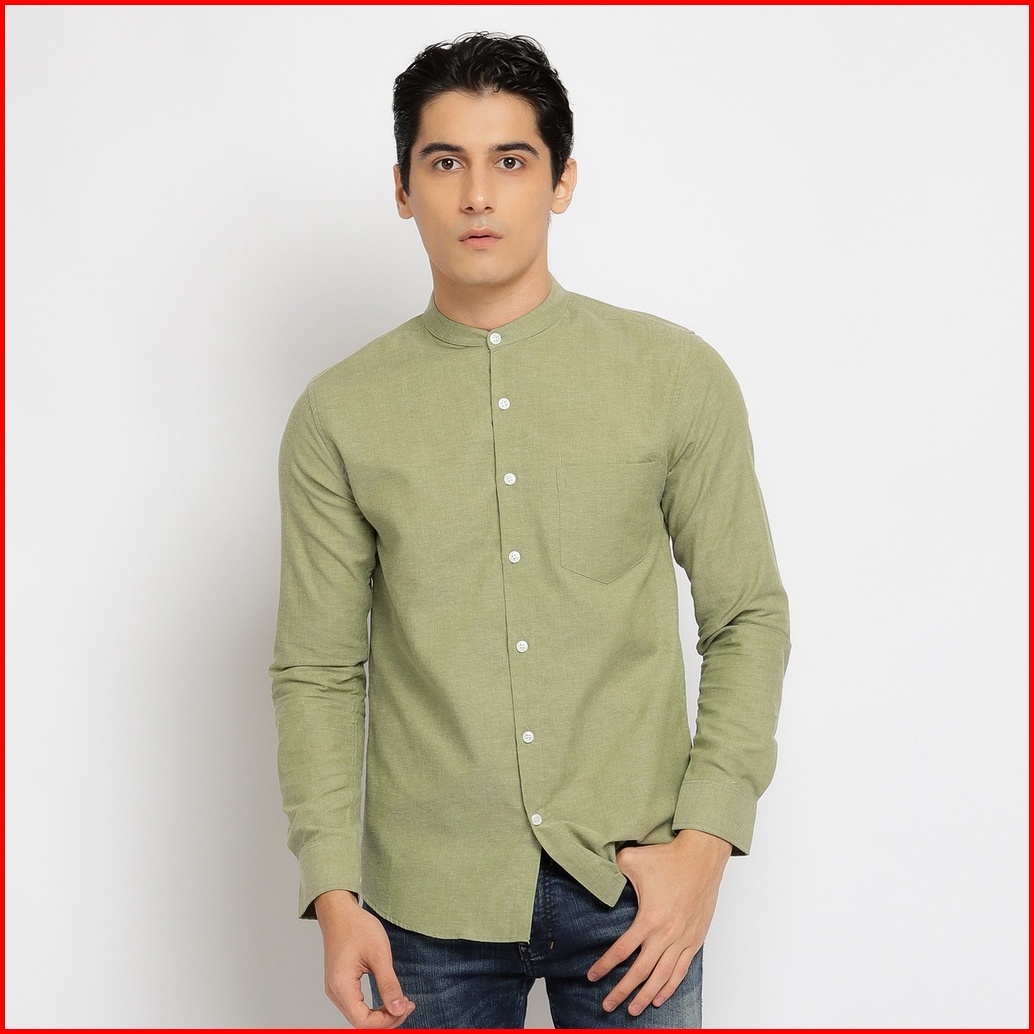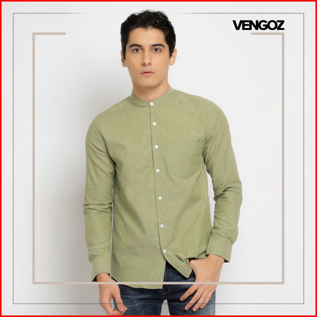 Vengoz Kemeja Oxford Shanghai Pria Slim Fit - Olive Green