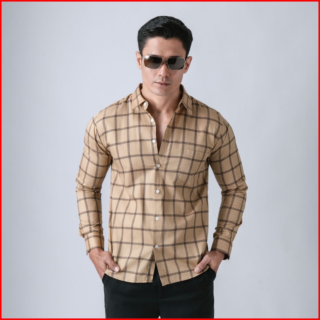 Vengoz Kemeja Pria Slim Fit - Roma Plaid Shirt Brown Ls